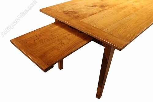 Raised on sturdy square tapering legs, the table offers excellent stability and a clean, understated silhouette typical of provincial French furniture. A particularly desirable feature is the original pull-out bread slide, neatly concealed beneath the top and providing additional surface space when required.