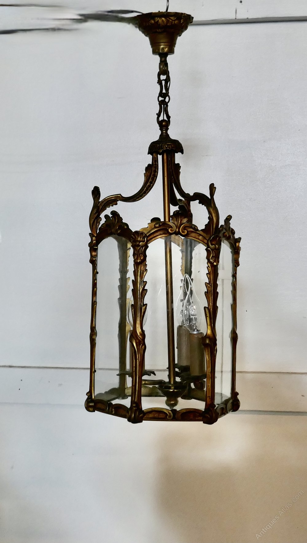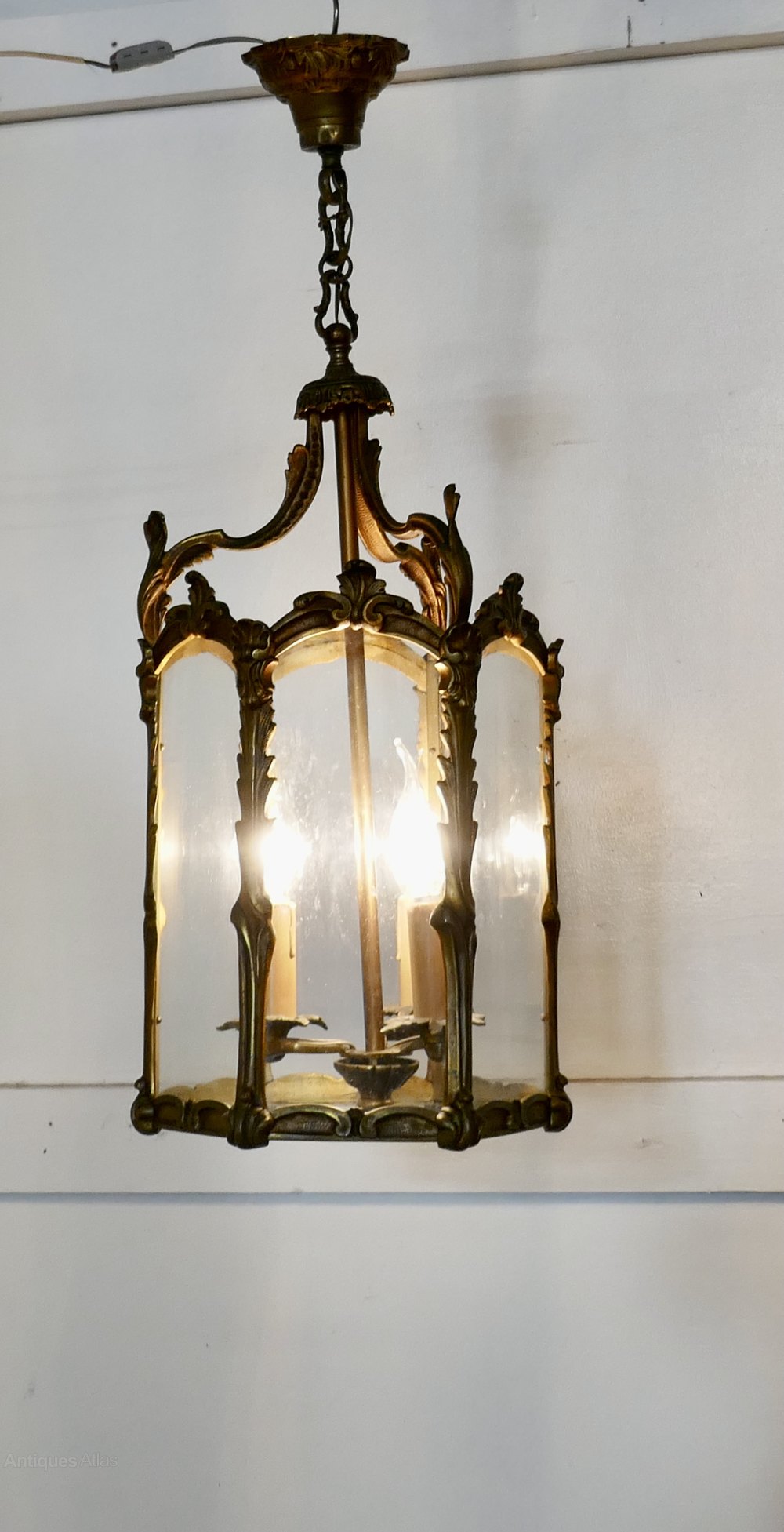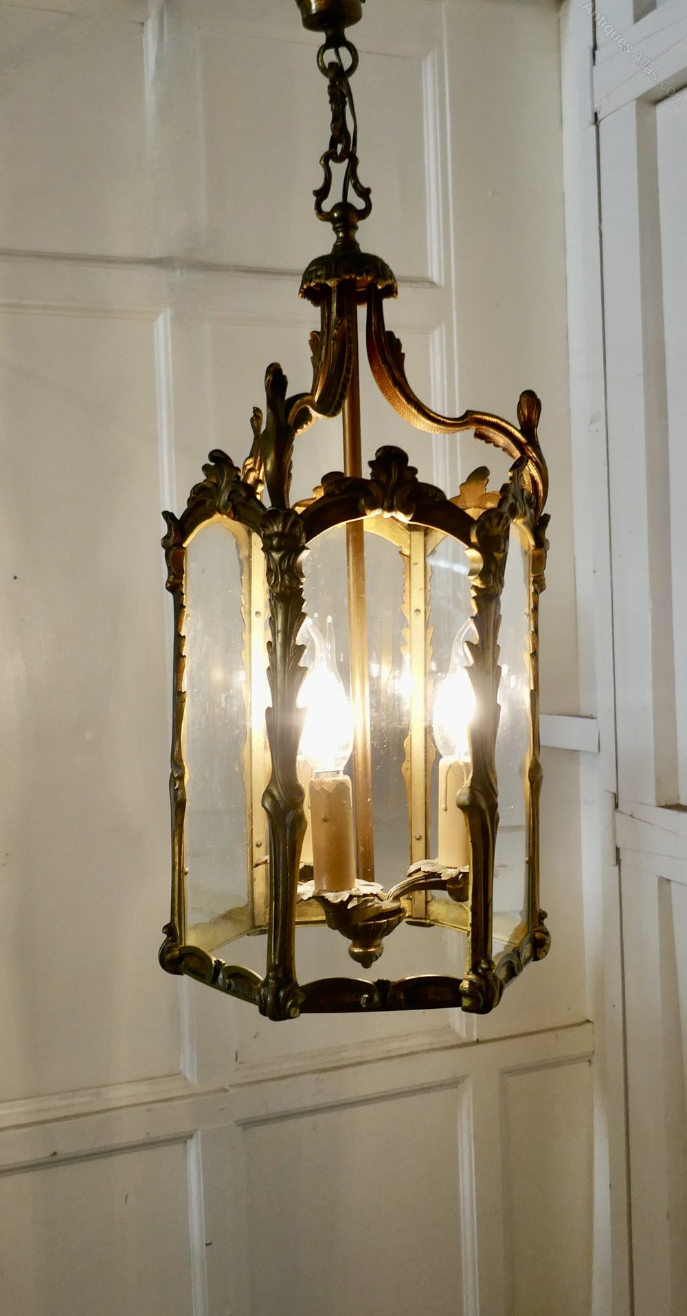 Large French Rococo Brass Glass Lantern Hall Light