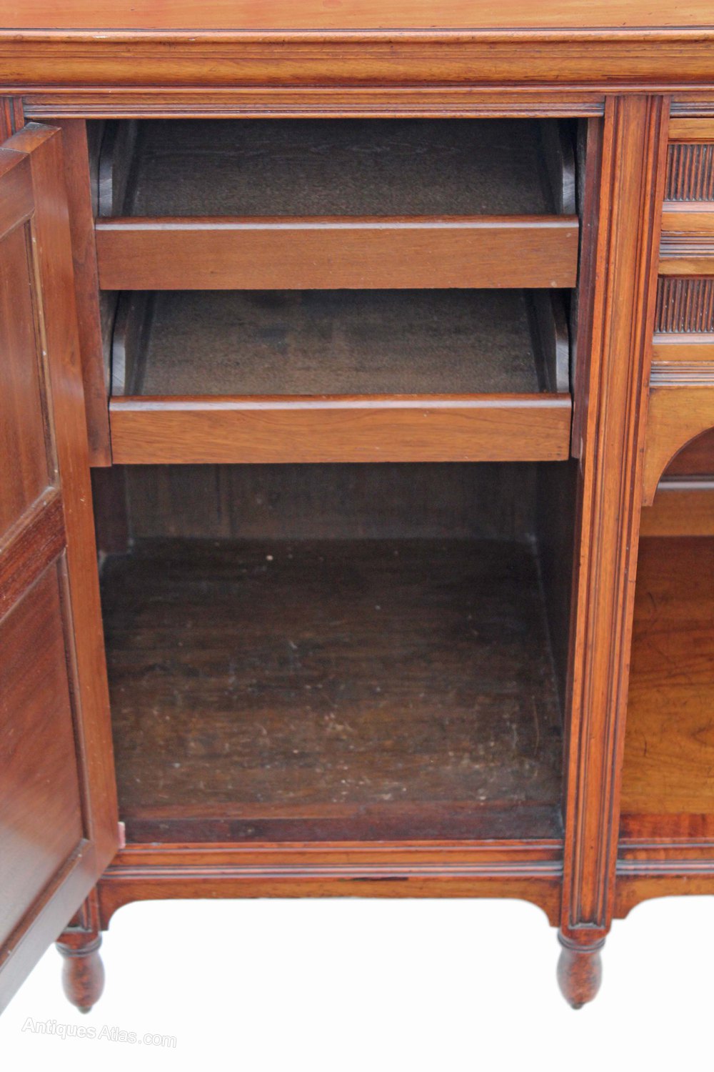 Historic knocks, marks, cracks, scratches, wear, imperfections, repairs and alterations, as is always the way and to be expected with genuine antique furniture. May have originally had an upstand or mirrored back (these aren't to everyone's taste and often get removed). There is a cutlery drawer, which is lined with old baize bearing some wear and marks (as one would expect). Later ball castors have been added to the feet...these could be removed, lowering the piece by 20mm, if required.