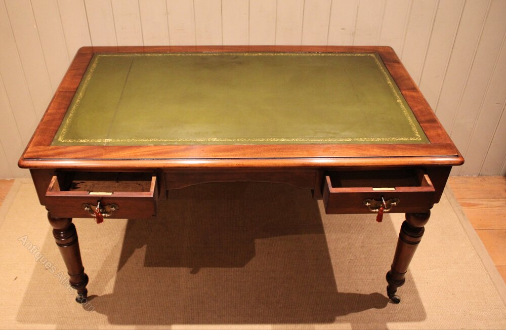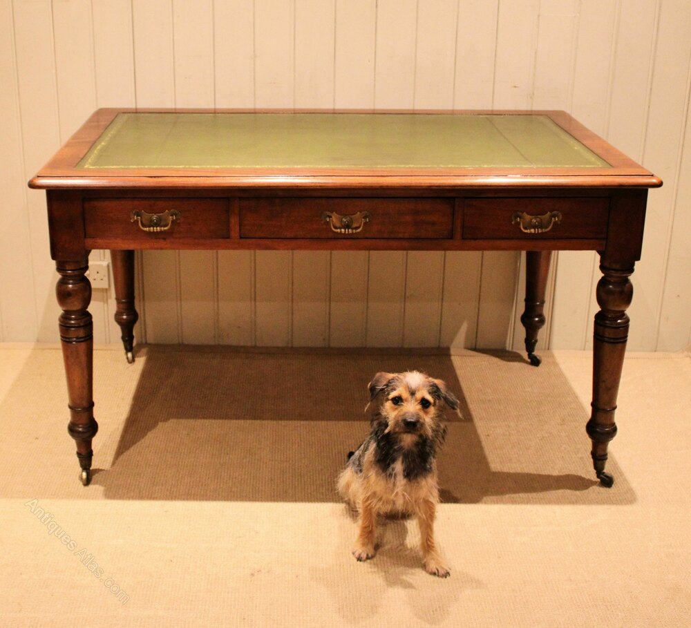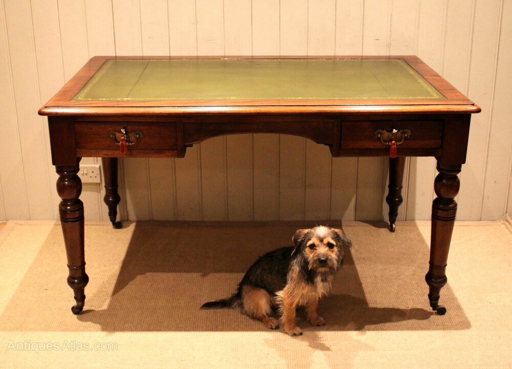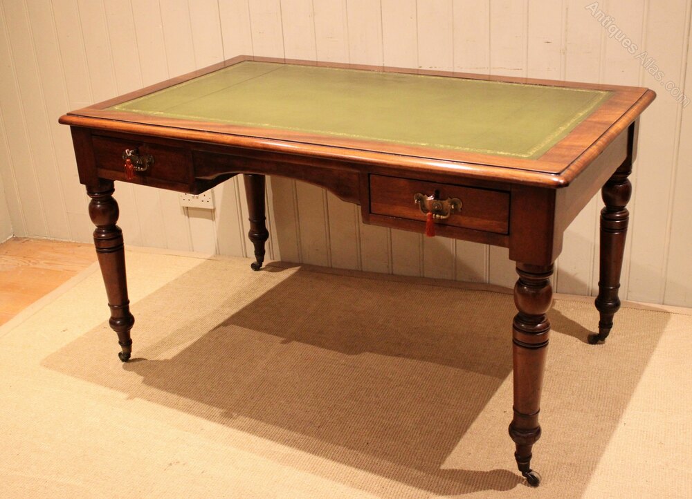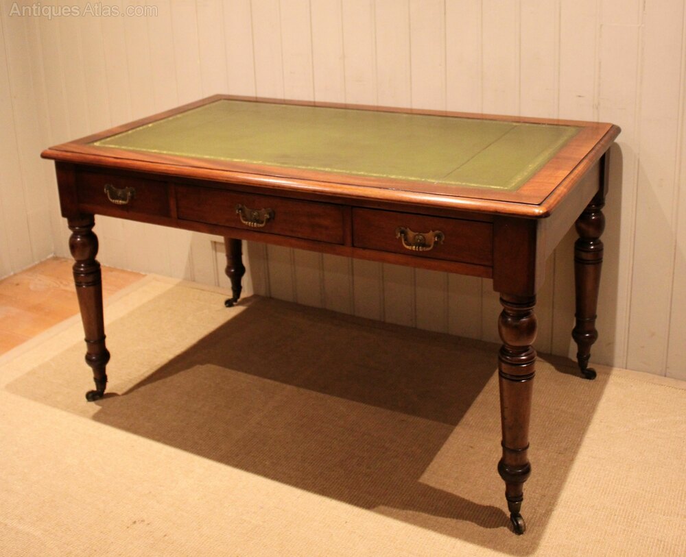 Antique Victorian Walnut Leather Top Pedestal Desk