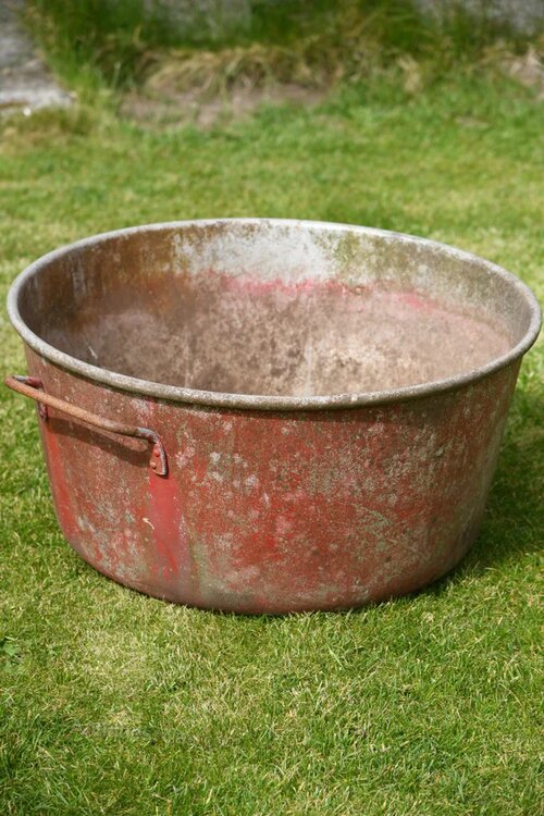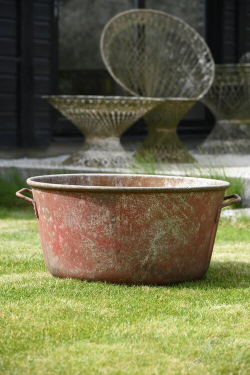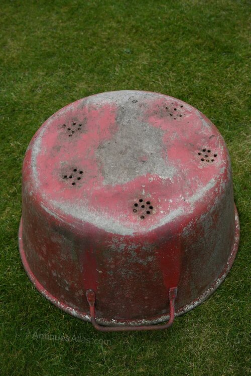 Delivery: £75 flat rate quoted covers England and Wales only. Delivery offered is an economy service to ground floor room of choice with a two man team. If you would like the item delivered up flights of stairs, have poor access, require delivery to Scotland or require Express service please contact us in advance. PricePrice to be added. Dimensions69cm wide x 76cm including handles x 34cm deep. Category Garden Antiques Date 20th Century 20th Century Antiques Material Aluminium Origin English Condition Good, vintage, drilled holes in the bottom, Item code as818a4828 / 6031097 Status For Sale