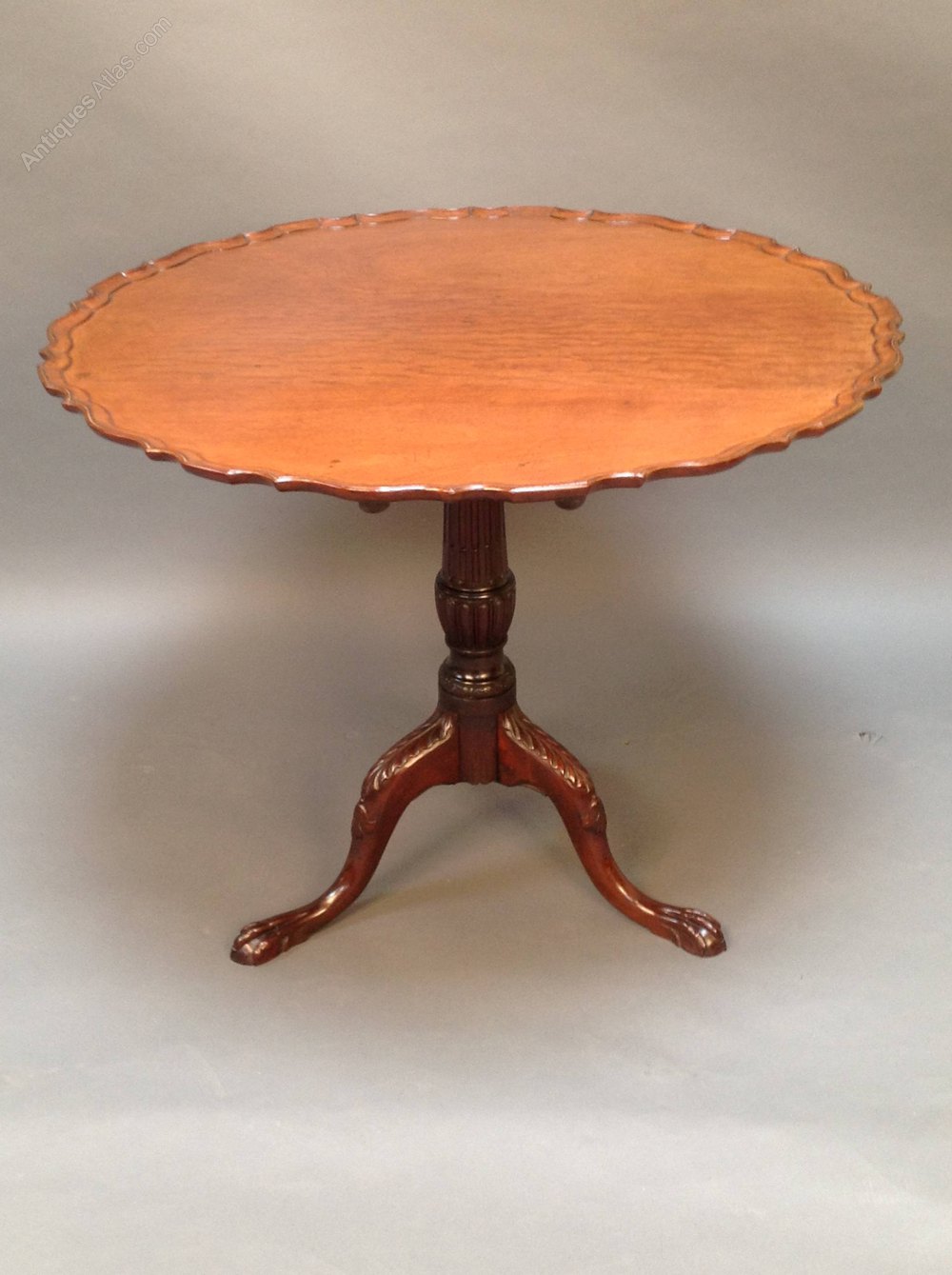 Large/Pie Crust Mahogany Tripod Table with Carved & Fluted