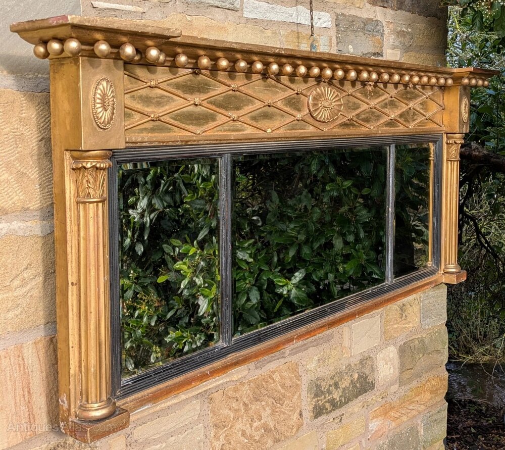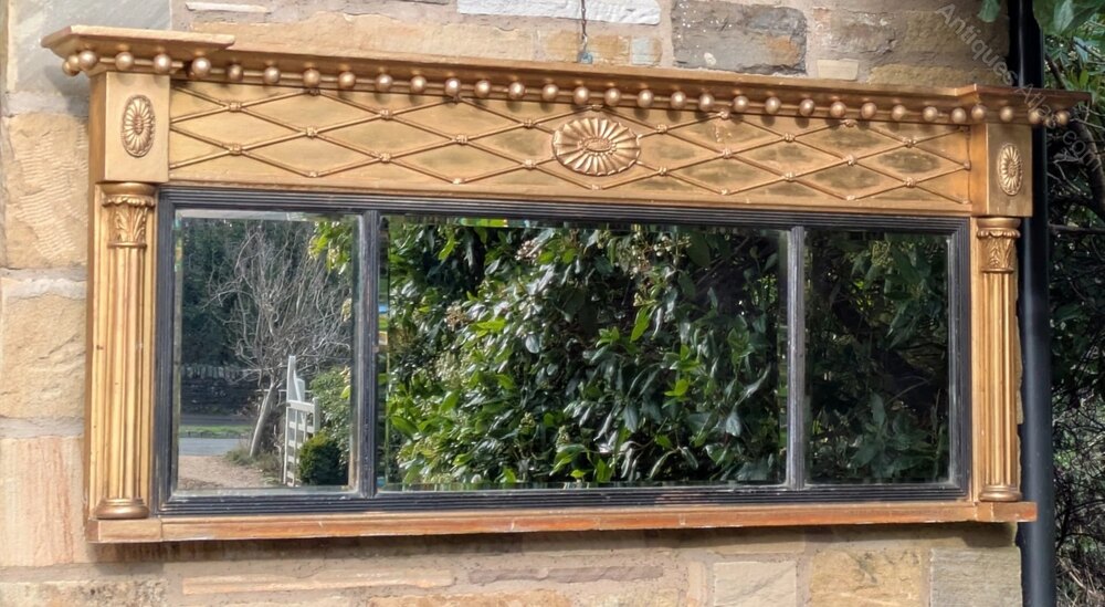 This is an elegant 19th century Regency style triple plate Overmantel mirror in excellent condition dating from around 1850.