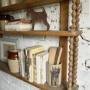 A large impressive set of French bobbin wall shelves. This is a magnificent antique piece of furniture that is filled with charm and personality. Chunky pine in a weathered and worn finish.