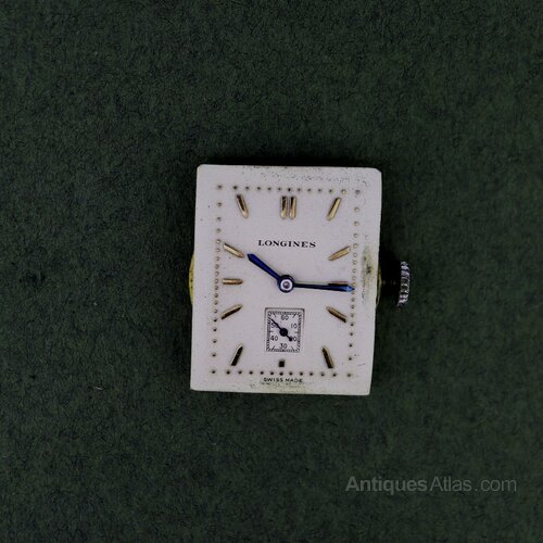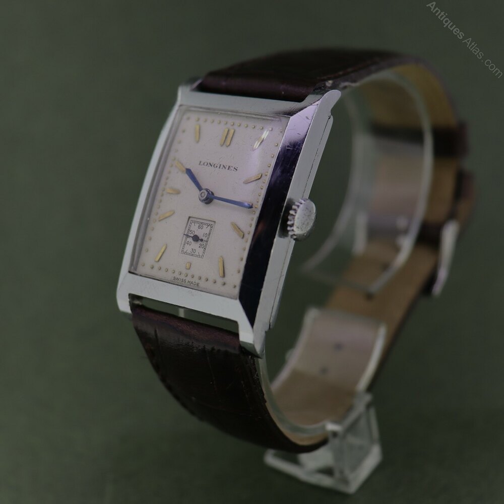 A Large size vintage Longines oblong wristwatch. The Longines 10.68z movement signed and numbered. The chrome plated case also numbered as the movement. The white painted dial with gilt hour markers.