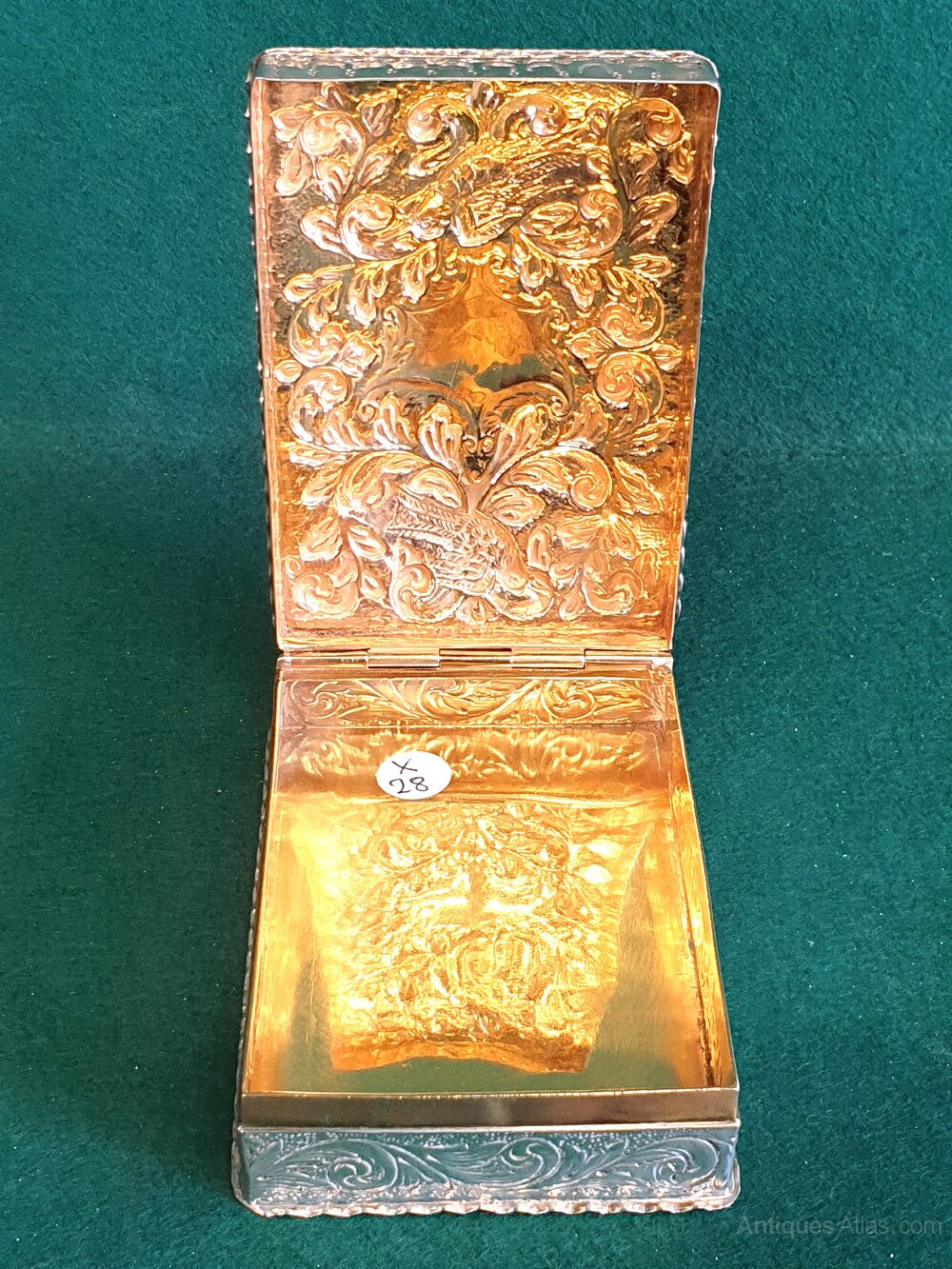 A wonderful quality Silver table snuff box having a silver gilt interior hallmarked for London 1894 maker William Comyns.