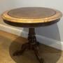 An unusual and good quality burr walnut occasional or display table. The revolving circular top having an inset hand dyed leather centre with blind & gold tooling set within burr walnut cross banding and thumb moulded edge. The conforming frieze with beaded edge and the underside having a steel pin which sits in the top of the base which allows the table to revolve if desired. The attractive turned column having egg & dart style carving and the whole raised on cabriole legs with acanthus carved knees and French style scrolling feet. This unusual table is in excellent condition and ready for use. Dimensions:- Height…29.5’’/ 76cm. Diameter…30’’/ 75.5cm. Delivery to most of U.K. by furniture carrier £50.