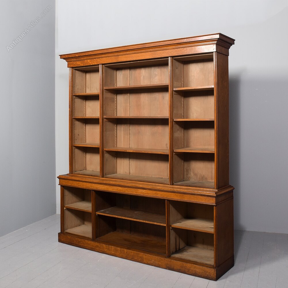 Large Victorian Oak Open Bookcase