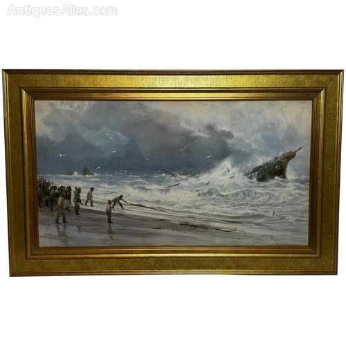 He exhibited regularly in London, including at the Institute of Painters in Water Colours (later the Royal Institute). His work is prized for its accurate observation of sea and weather coupled with strong narrative content.