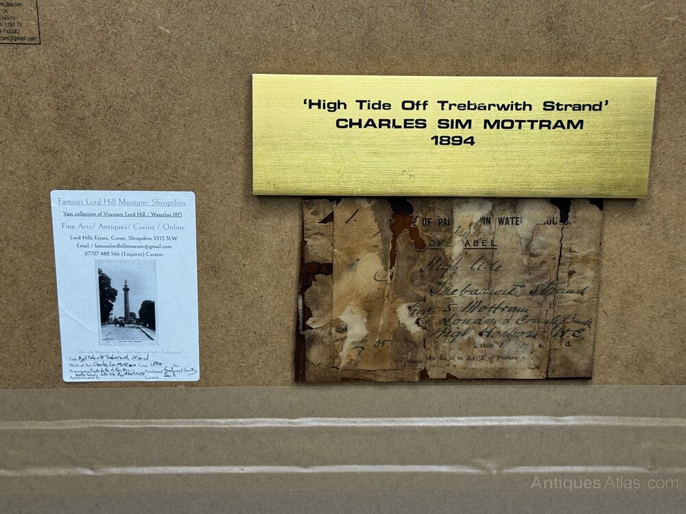 The artist again writes his name as “Chas S Mottram” on the original label verso, providing a second, independent confirmation of authorship in his own hand.
