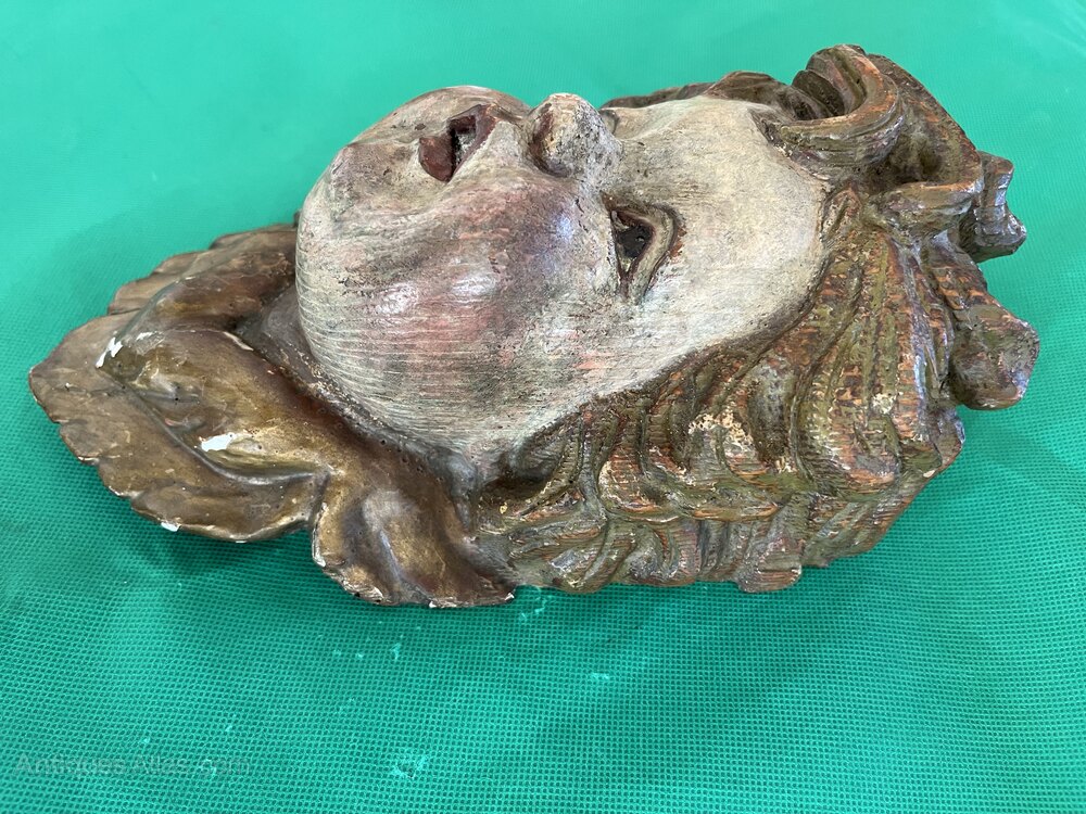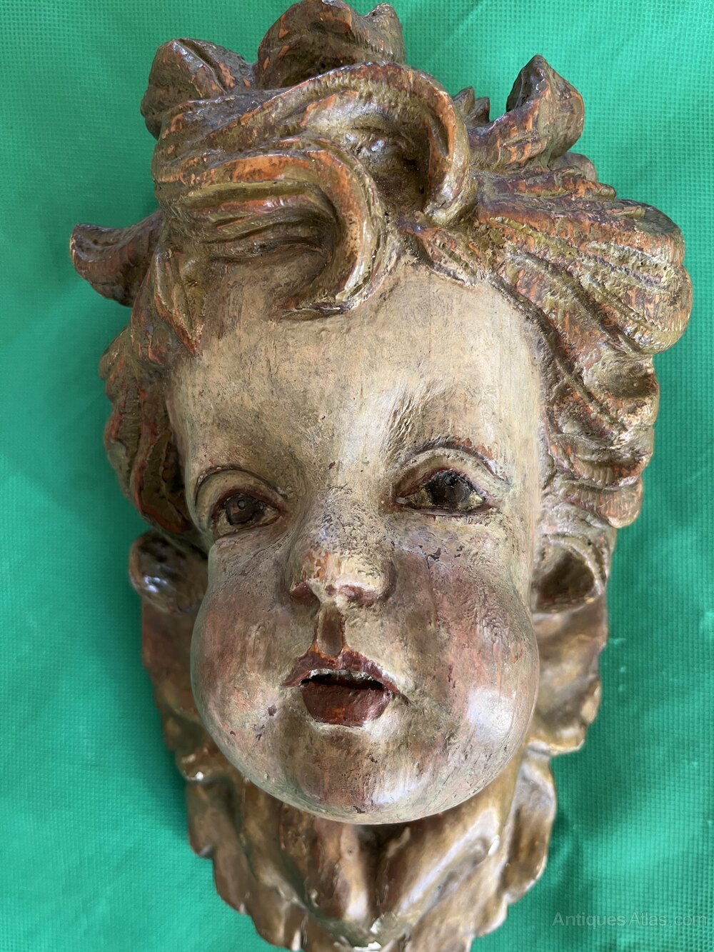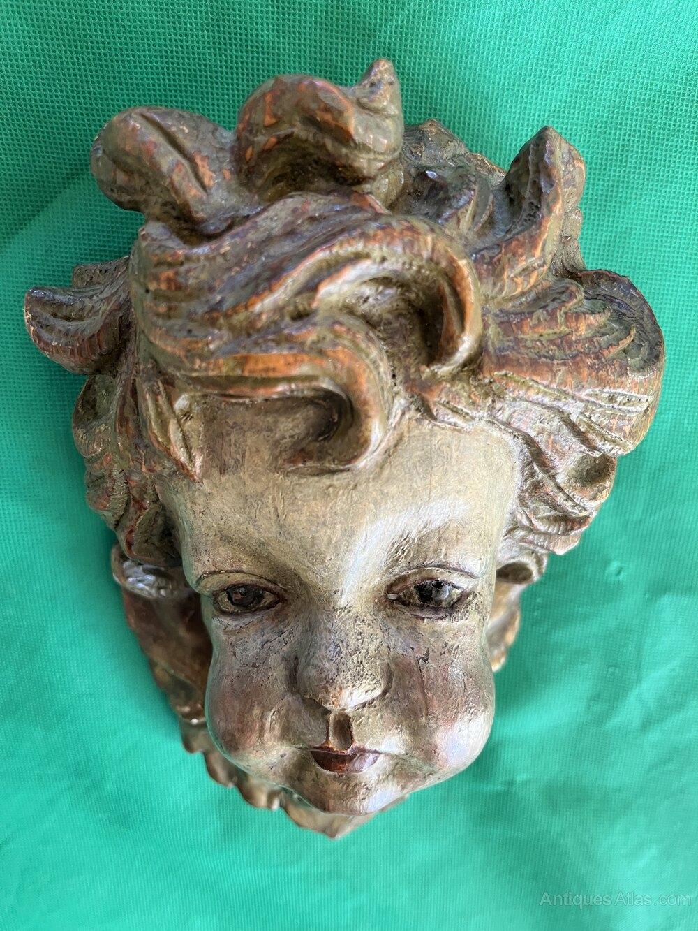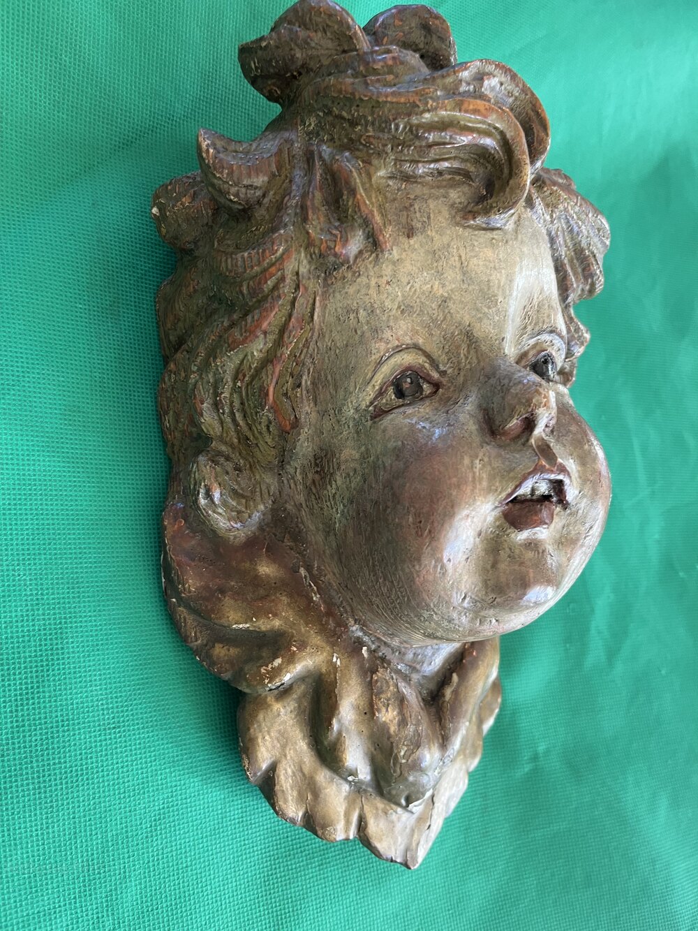 Late 18th Century carved wood gesso and gilt cherub or angel head.