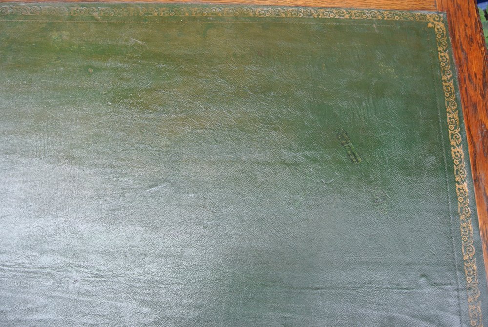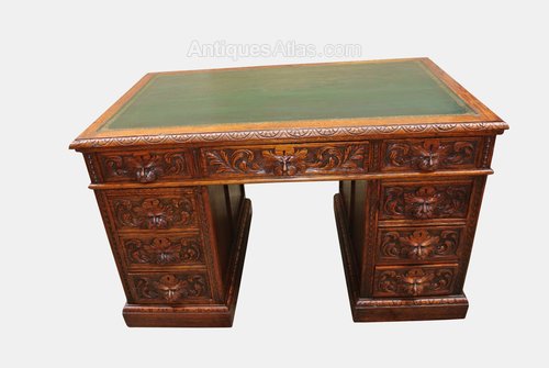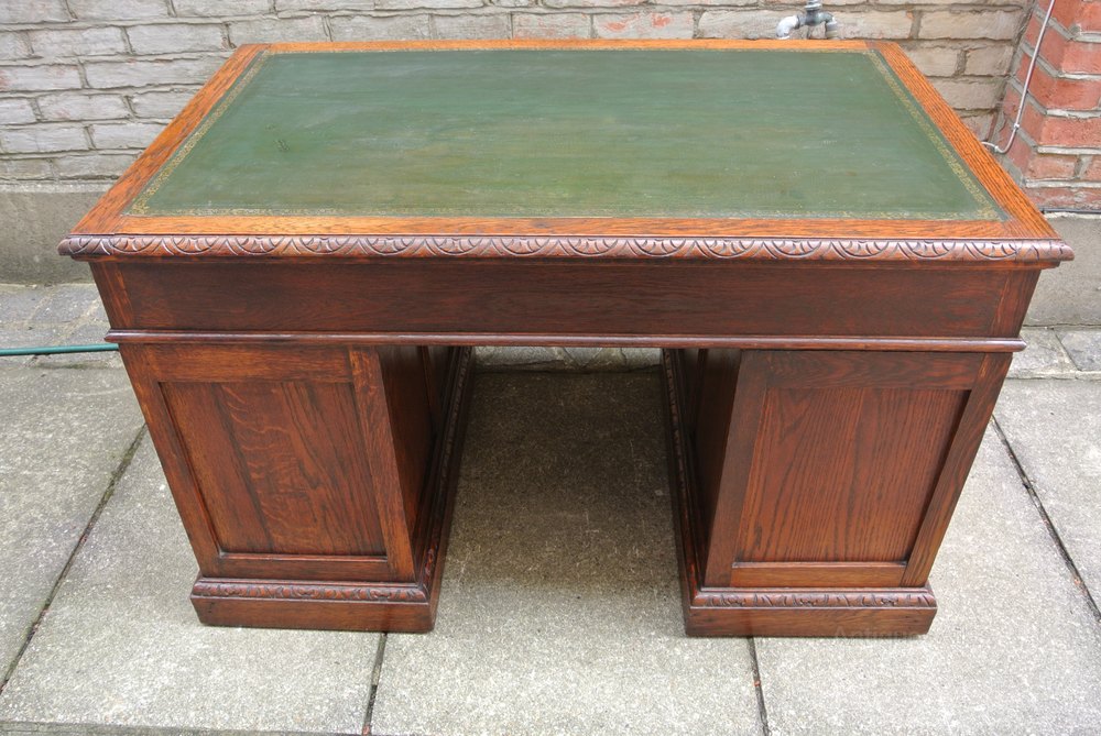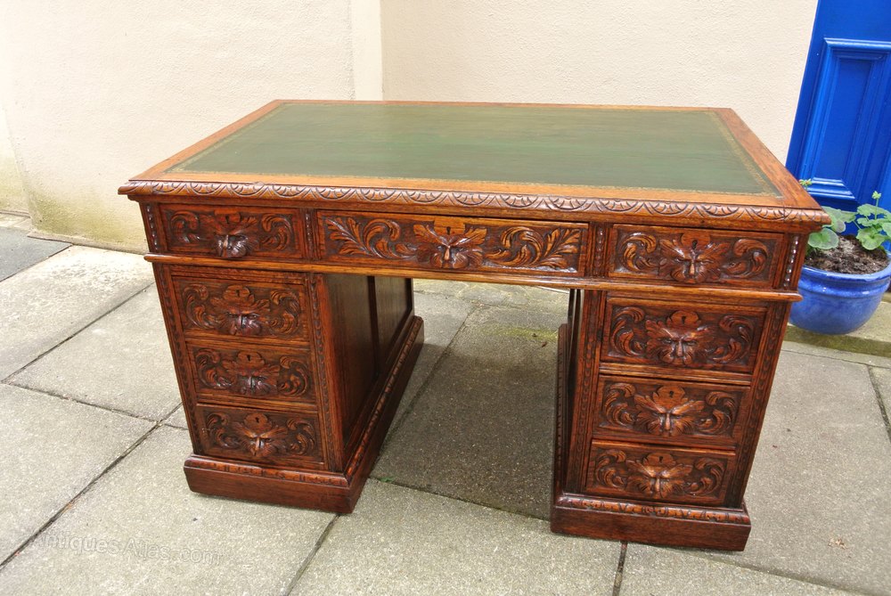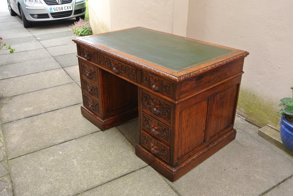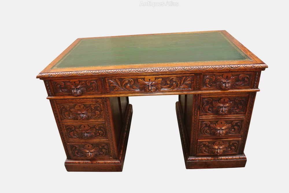 A Good Quality Late 19th/Early 20th c. Vitruvian Style Oak Desk With Panelled Sides And Lion Mask Handles