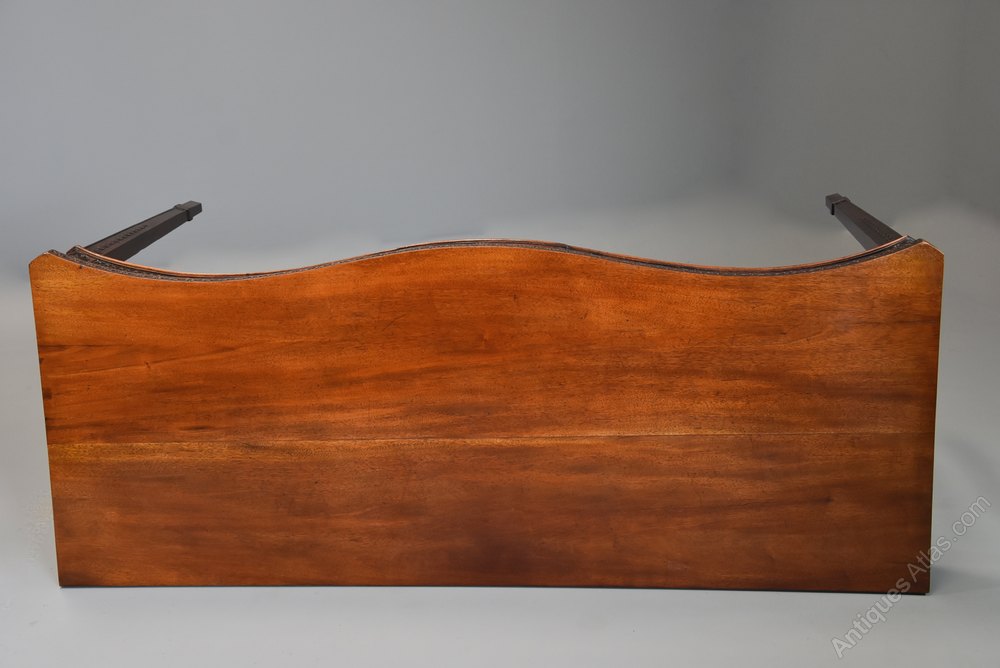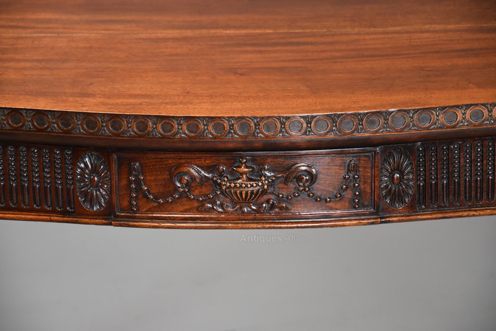 This table consists of a mahogany top with serpentine shaped front with carved circle decoration to the edge.