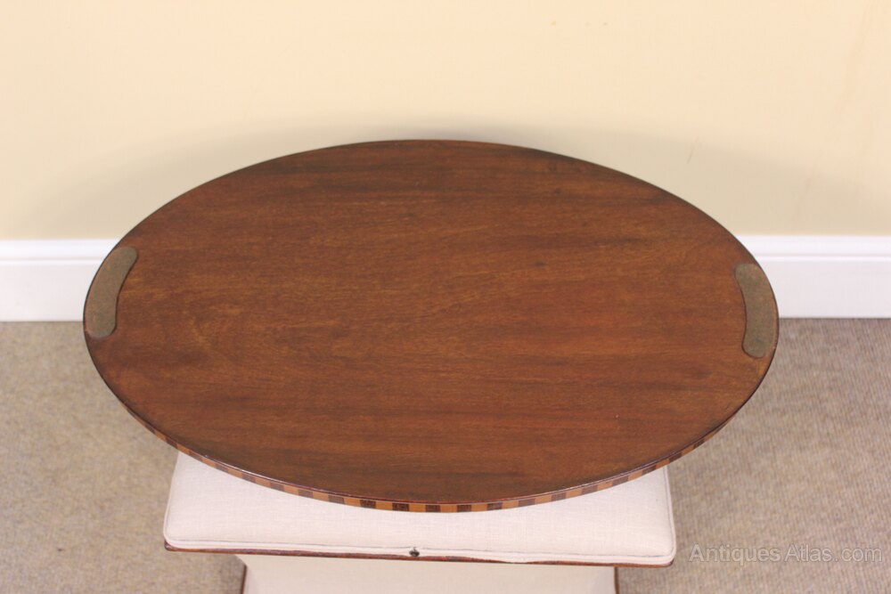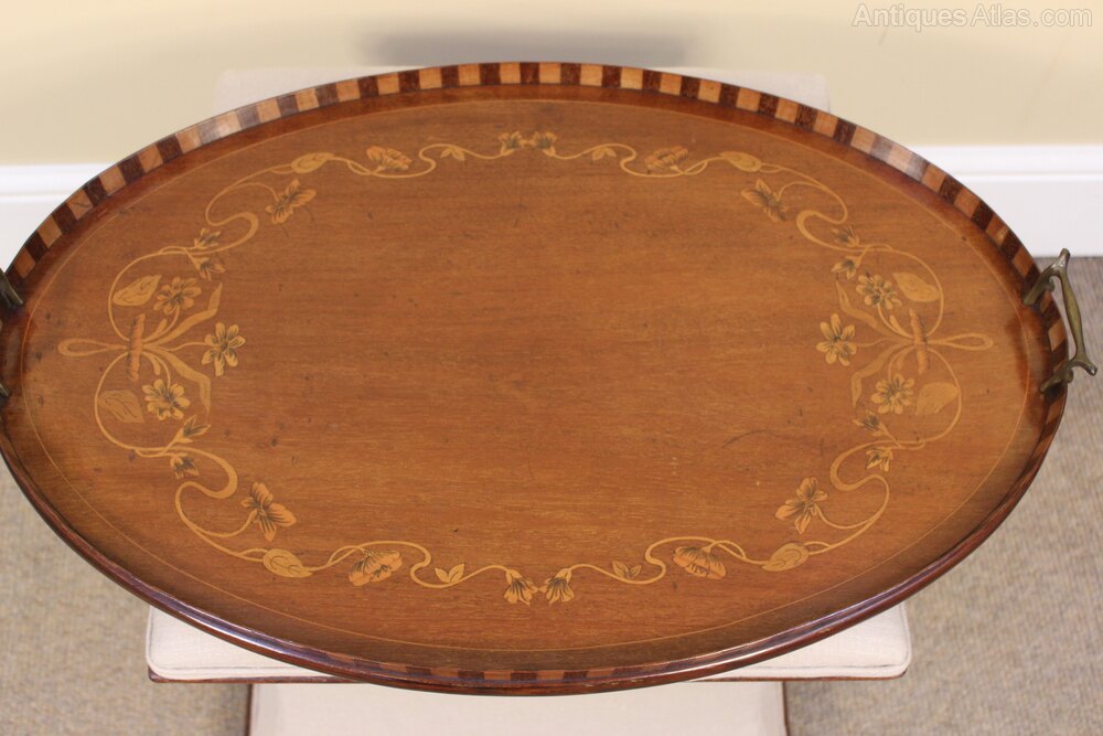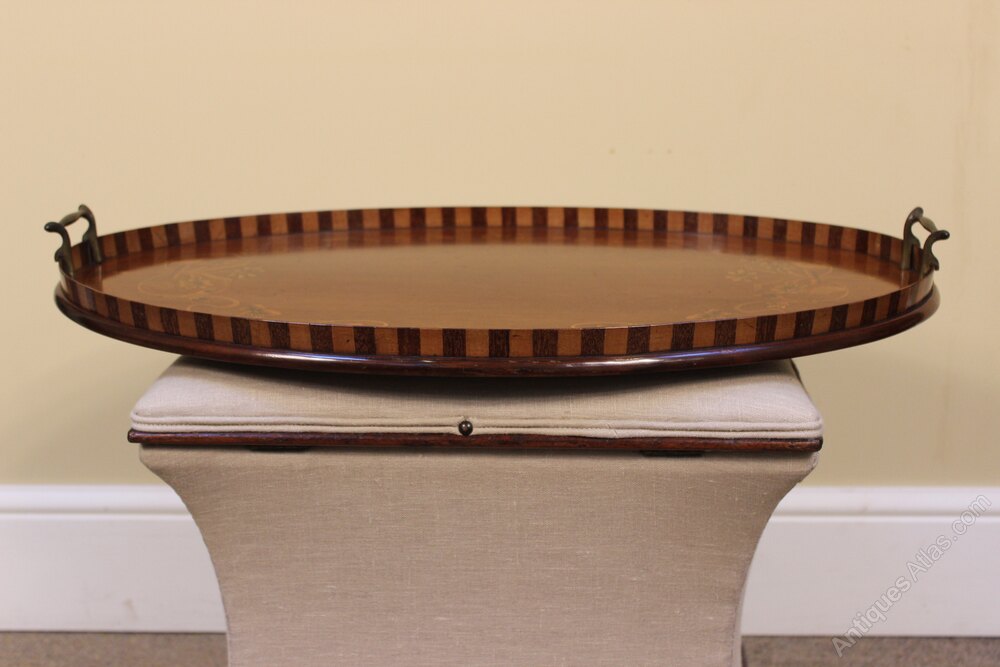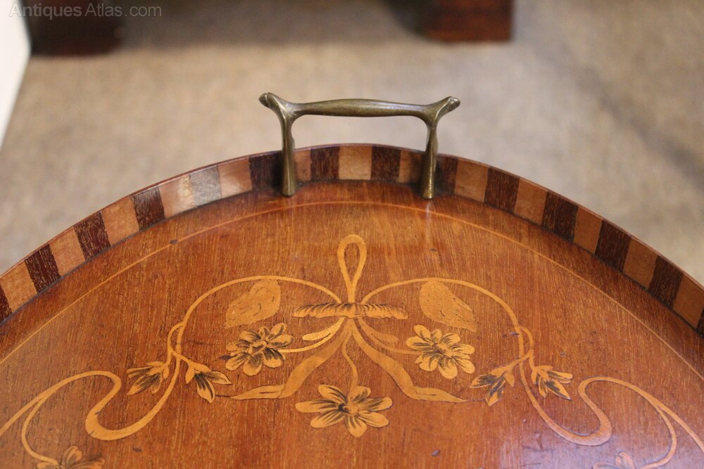Edwardian Marquetry Inlaid Shaped Oval Tray