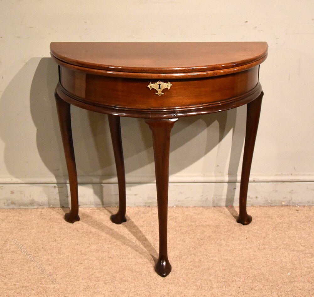 A George IlI fold over tea table standing on fine cabriole legs. Terminating in pointed pad feet. The hinges are later replacements. Mahogany of fine toffee colour