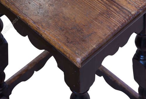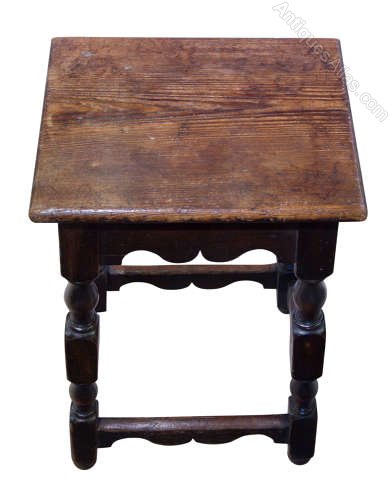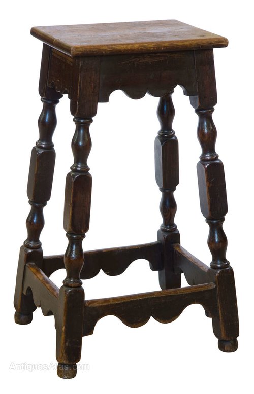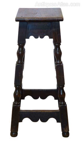 Late Georgian Pine Clerks High Stool wit shaped rails and elongated turnings, with good dark patina.