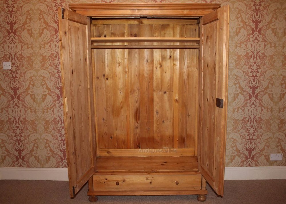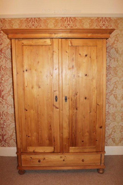 Late Victorian Antique Pine Double Door Wardrobe