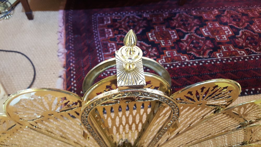 An Art Deco Brass and Sunburst Mirror Fire Screen