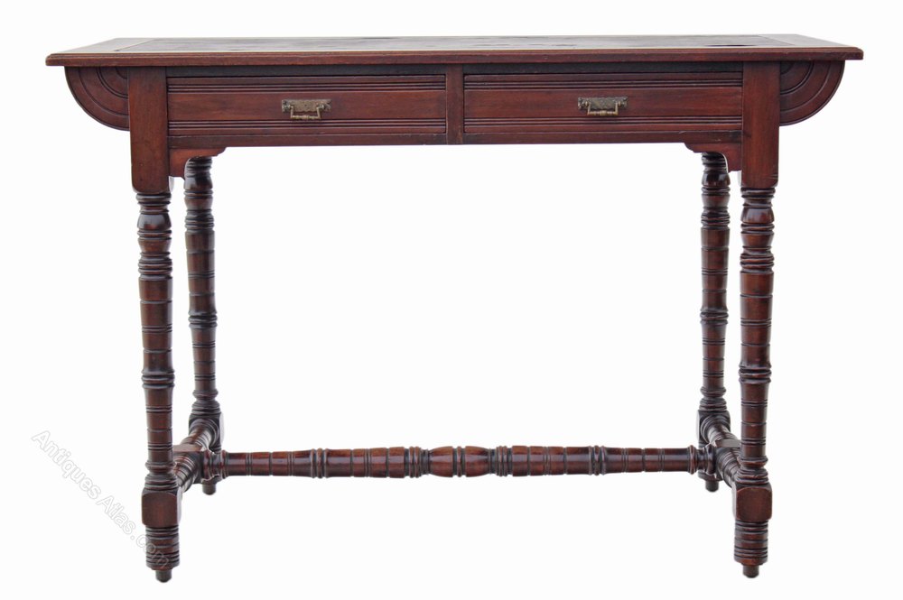 Antique late Victorian (or possibly early 20C) walnut desk or writing table.