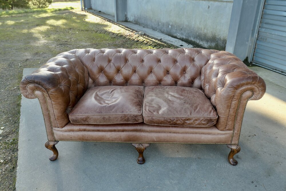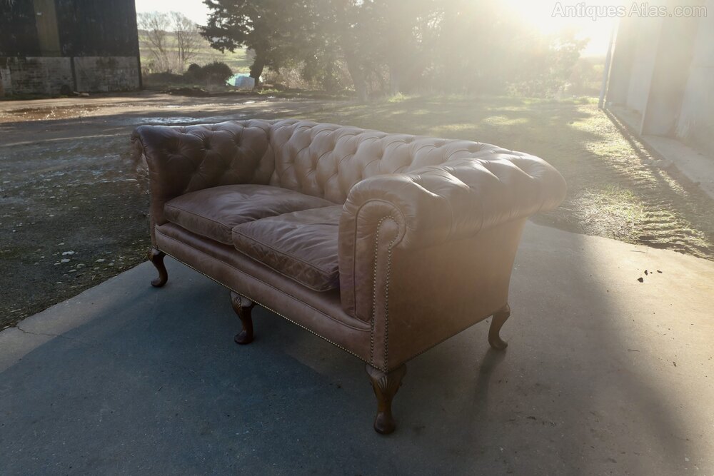 Leather 2 Seater Library Chesterfield Settee