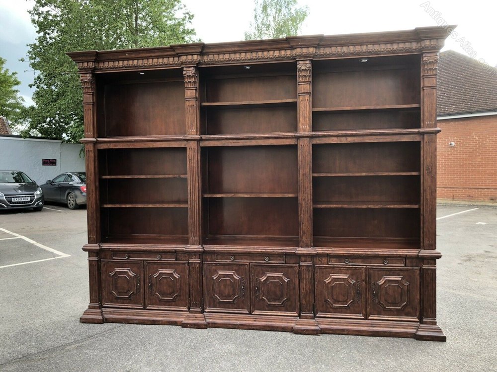 Library Breakfront Bookcase. HUGE IN SIZE. Splits Into 5 For Transportation.