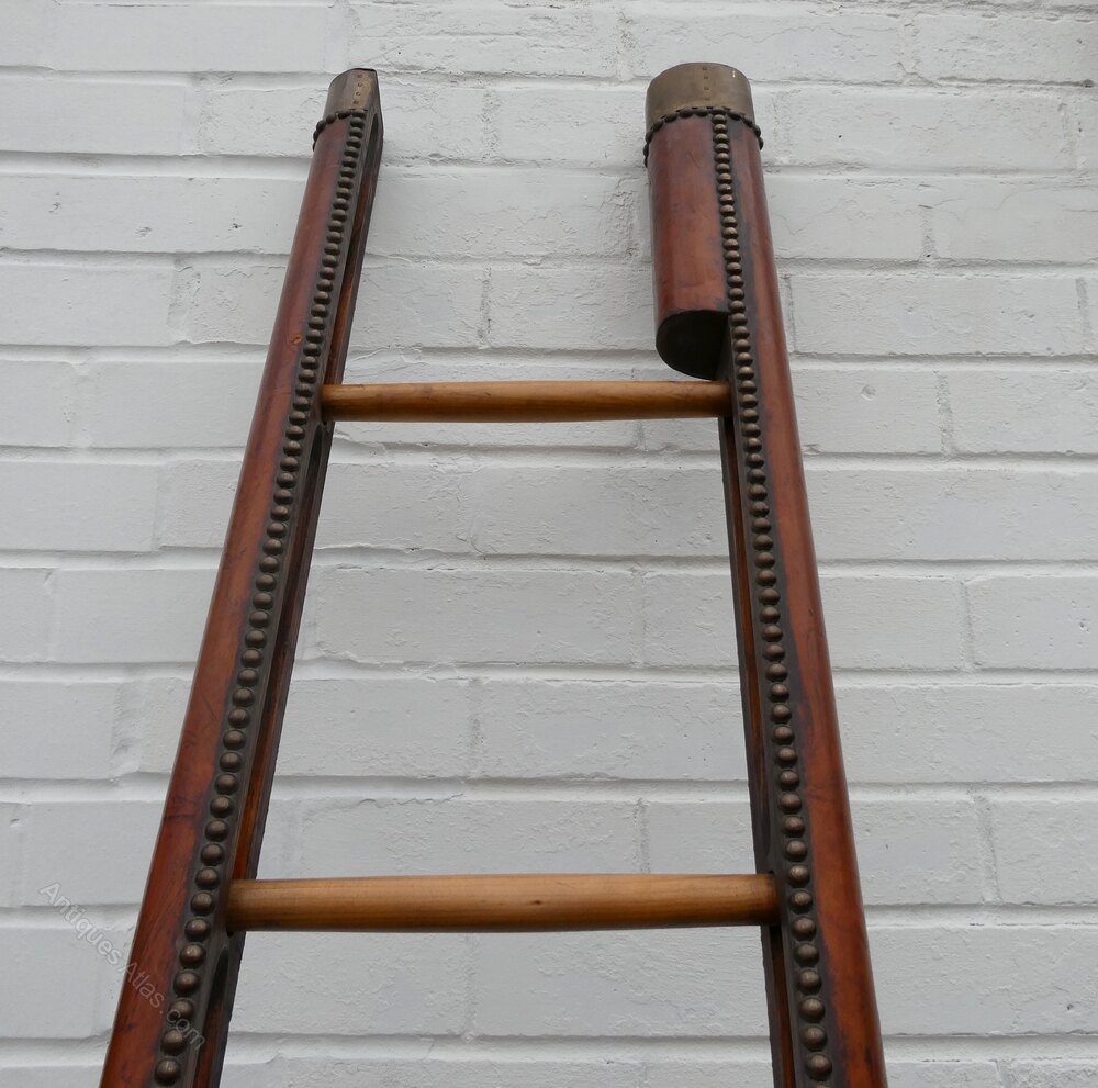 Library Ladder Folding Pole Rare Leather/studded
