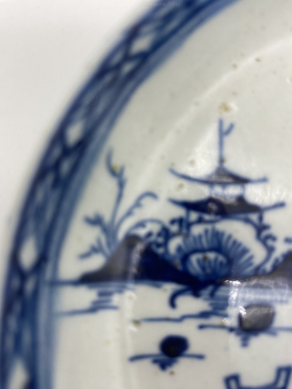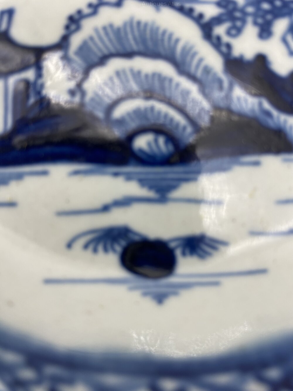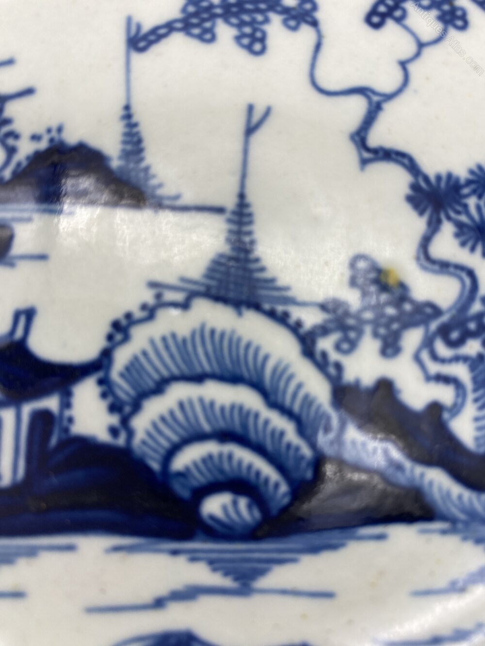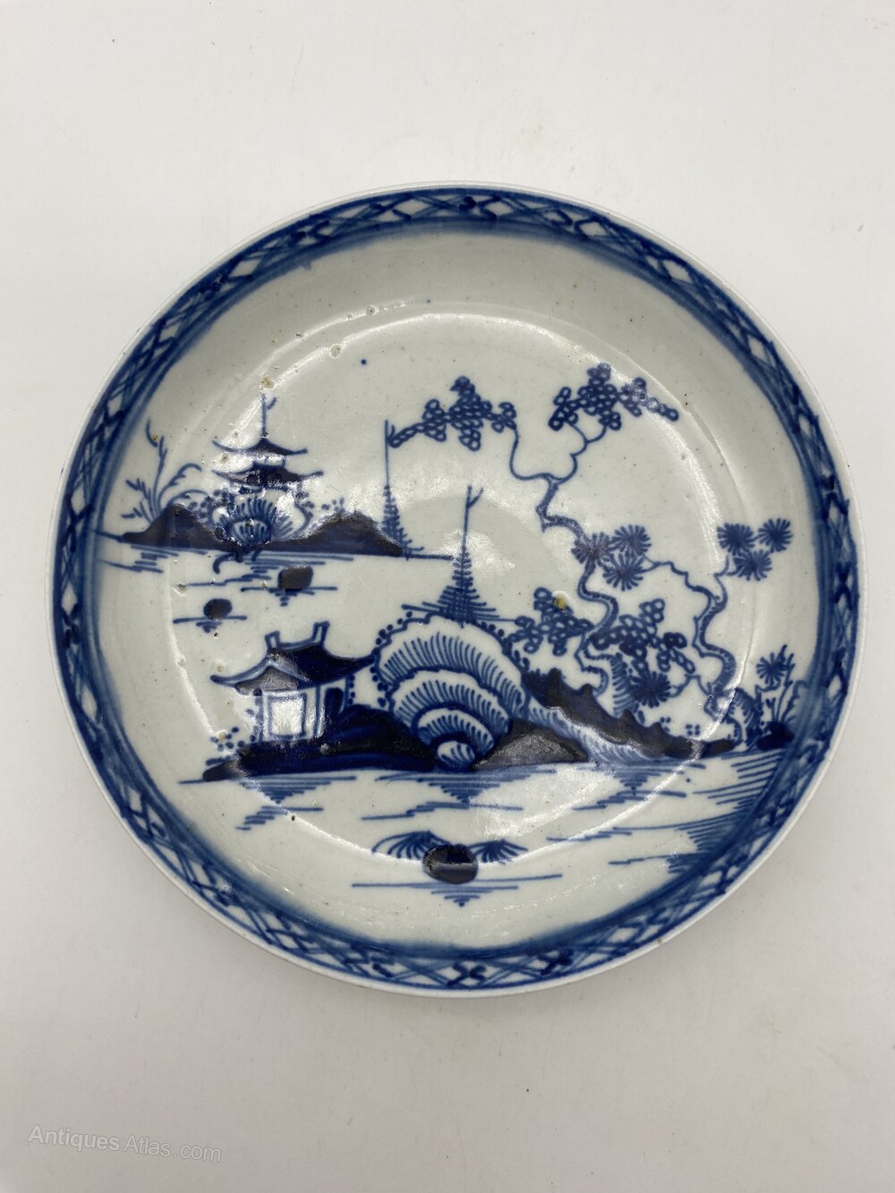 A Liverpool Blue and White Saucer depicting Cannon Ball Design.Dimensions:-12.5cms.
