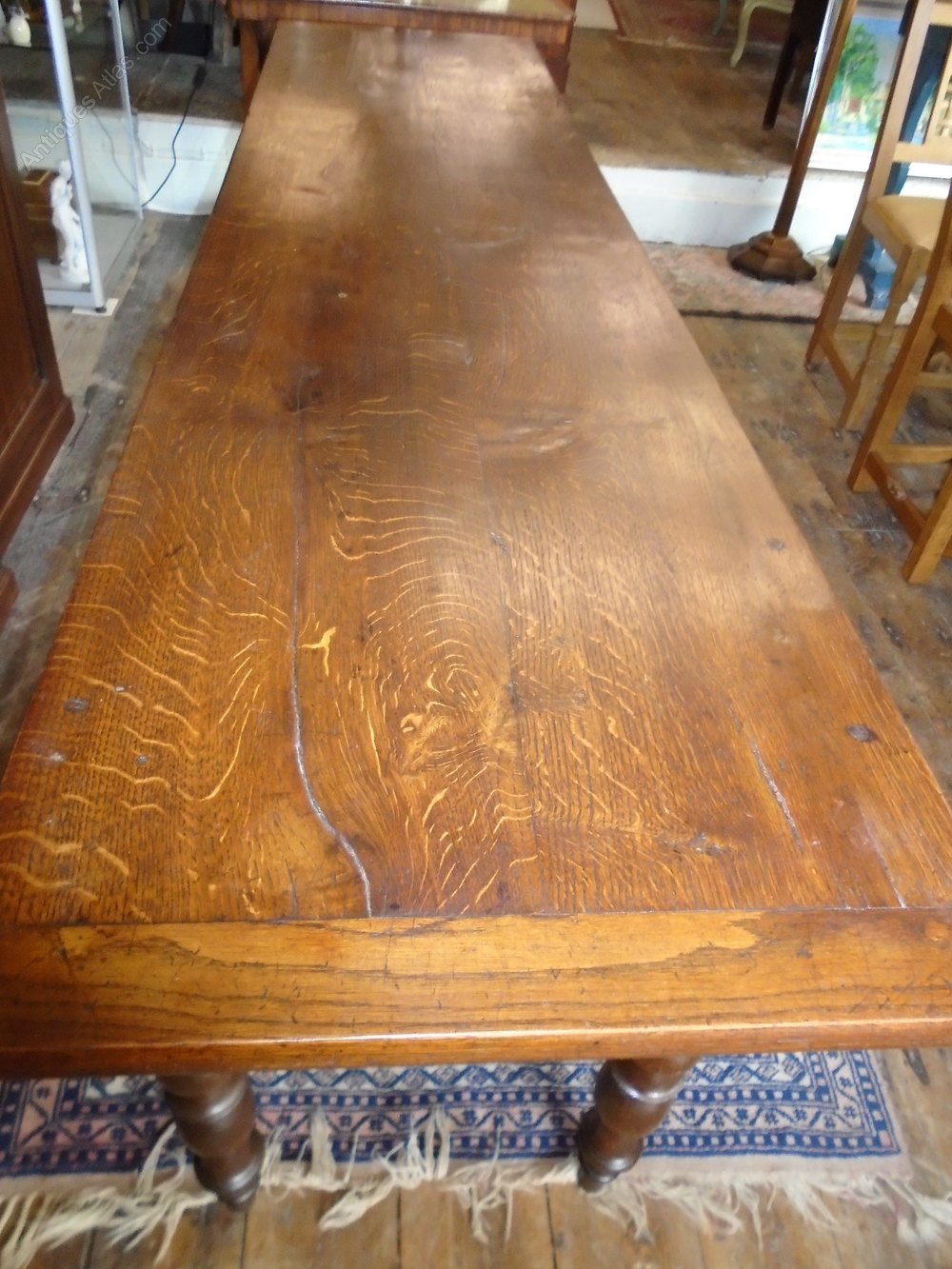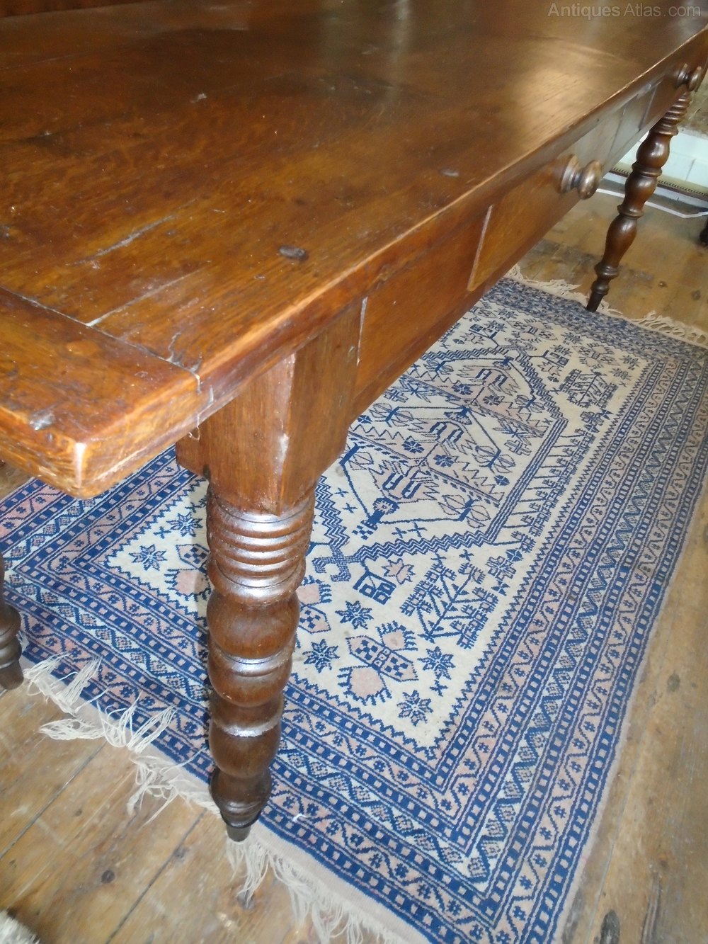 A good 19th Century solid oak French side table from the Burgundy region. The table with two drawers with round wooden knob handles, standing on ringed turned legs. The table is a good colour and in good condition.