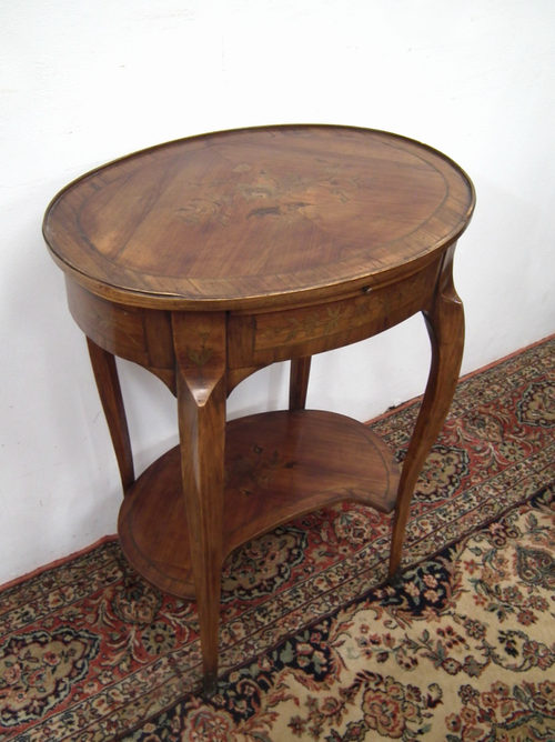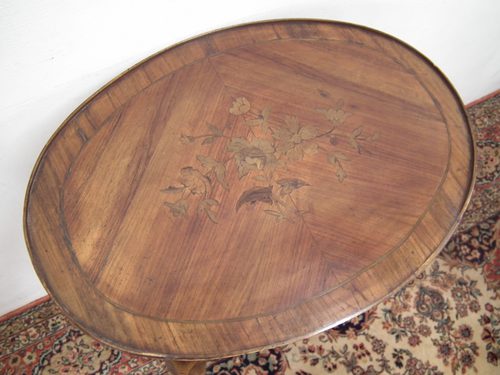 Louis XVI Style Inlaid Oval Side Table