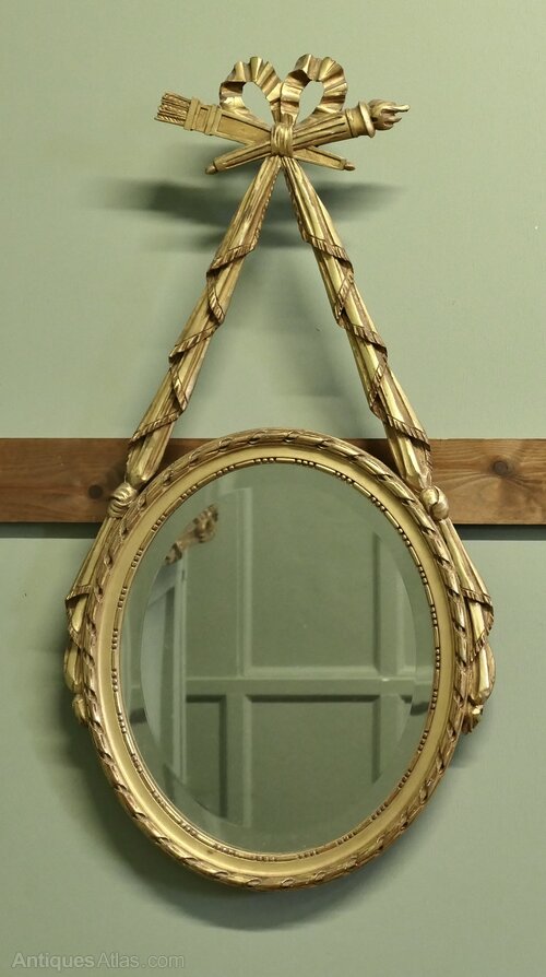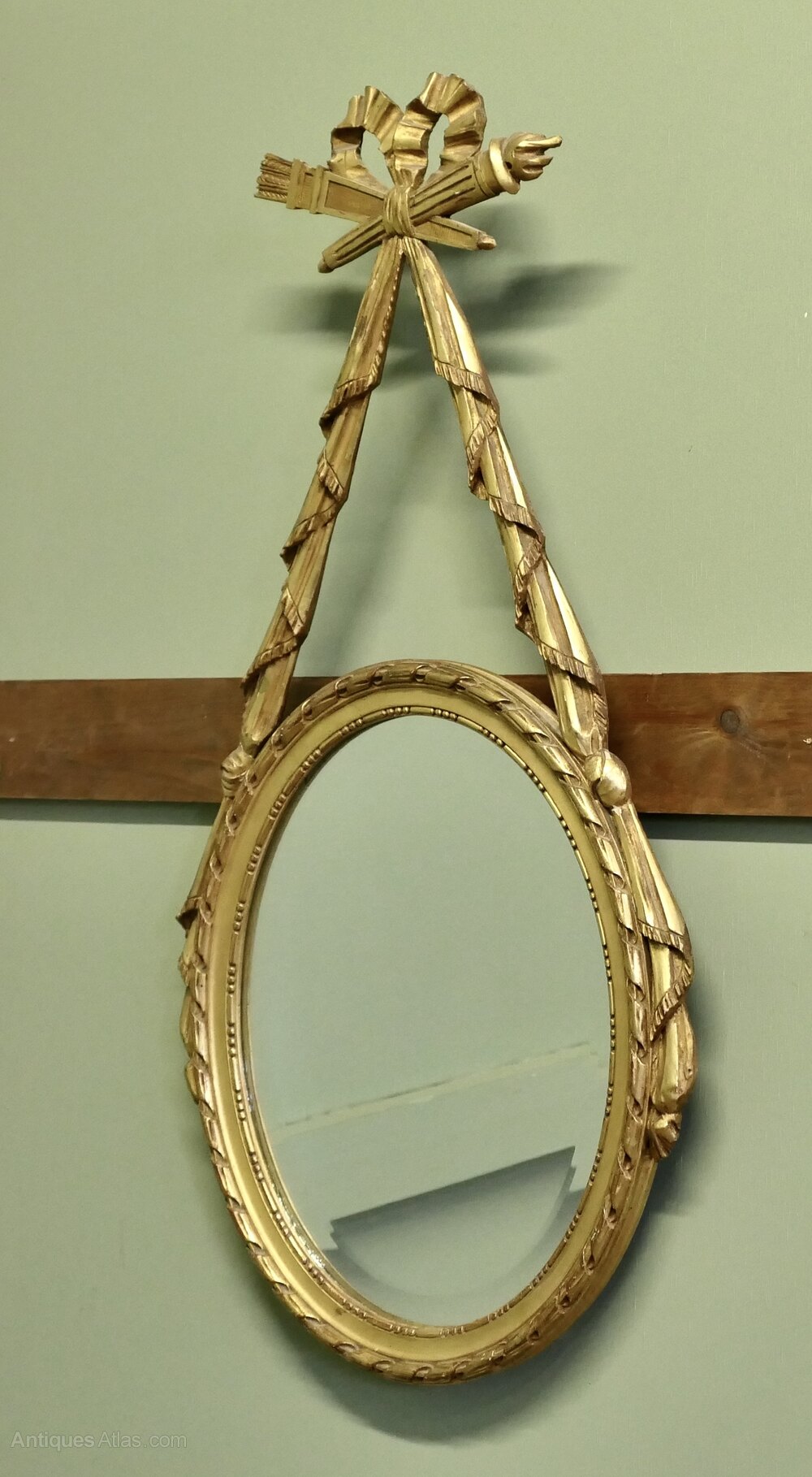 LouisXVI Style Gilt Ribbon and Bow Mirror Oval Mirror