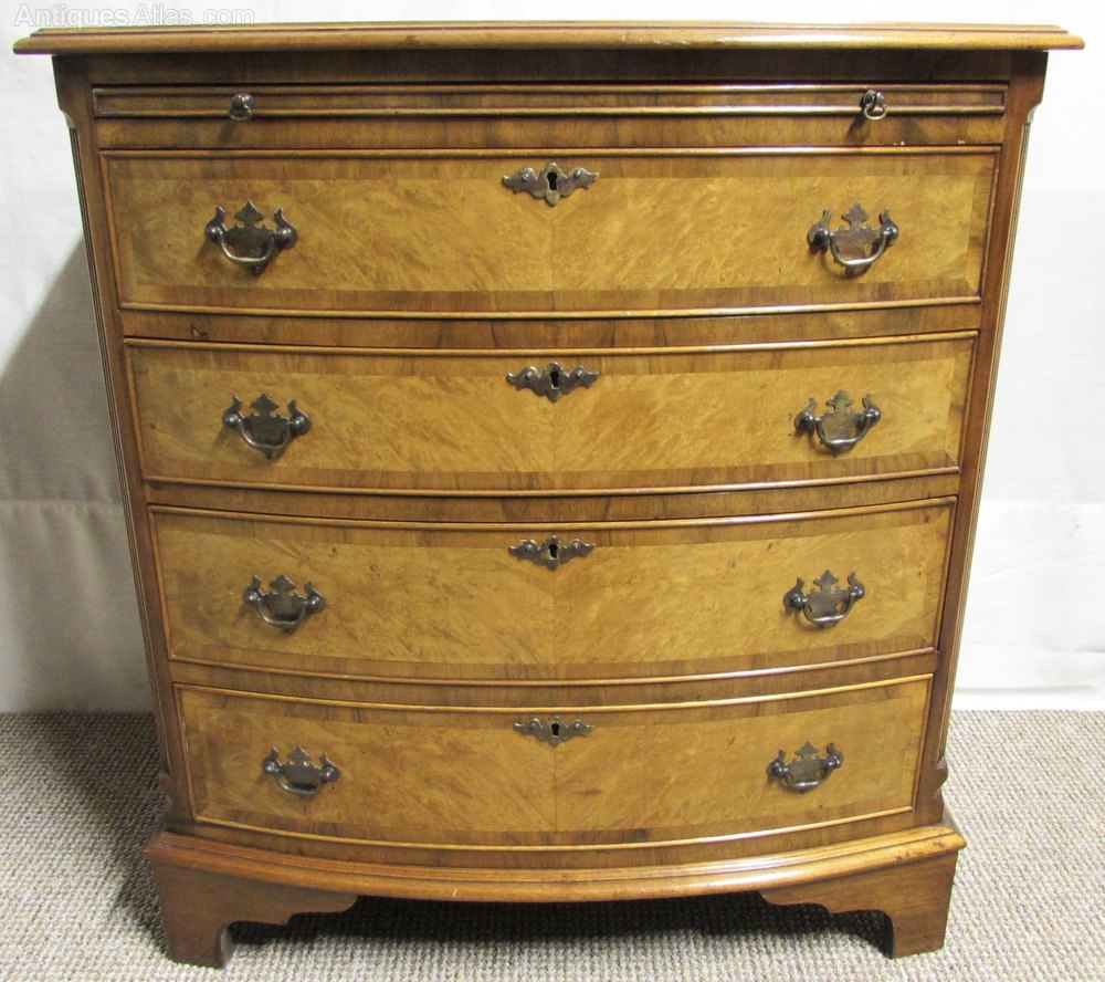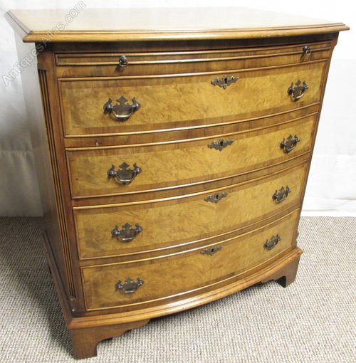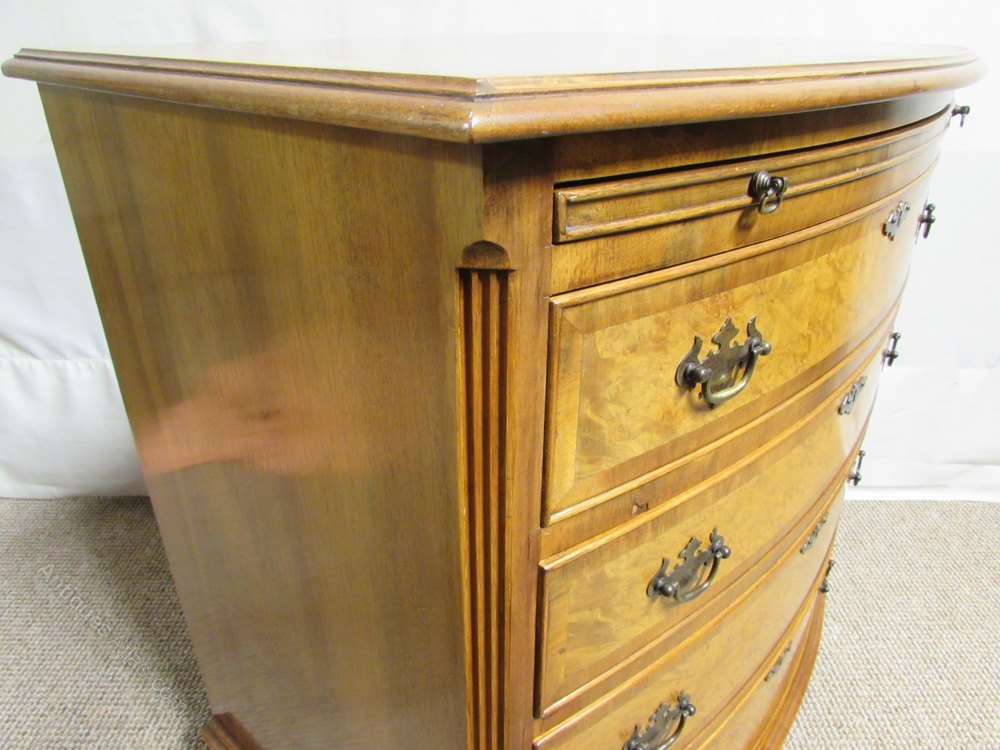 Lovely Burr Walnut Bow front Chest of Drawers