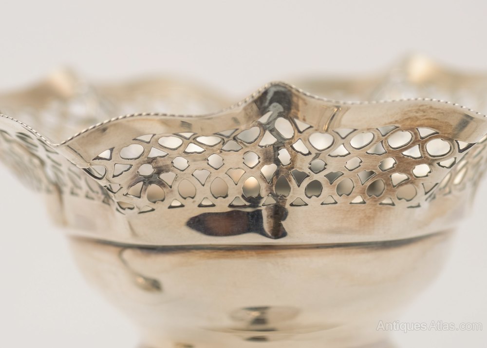 A Lovely Pair of Edwardian Silver Vases with pierced wavy shaped tops and weighted bases ( so they don't topple over easily ) Made by John Dixon & Sons and hallmarked Sheffield 1906