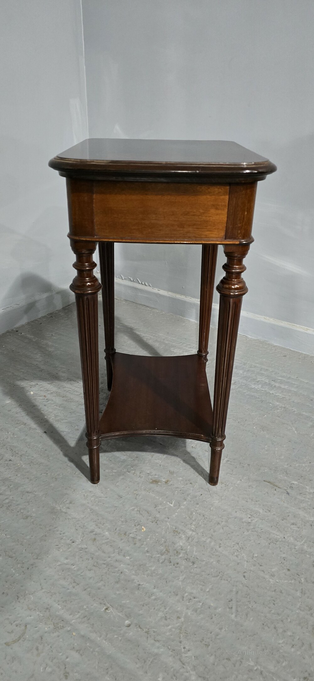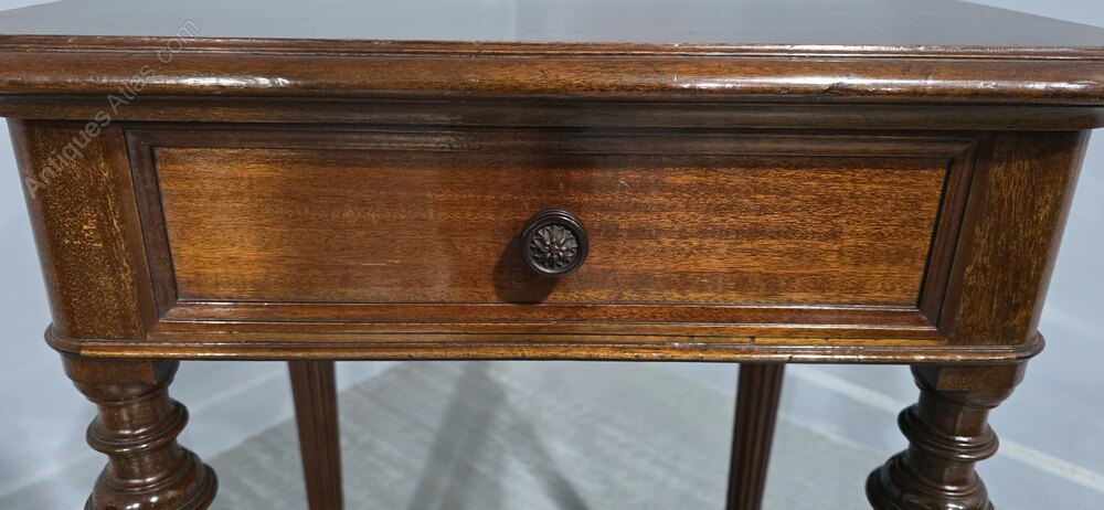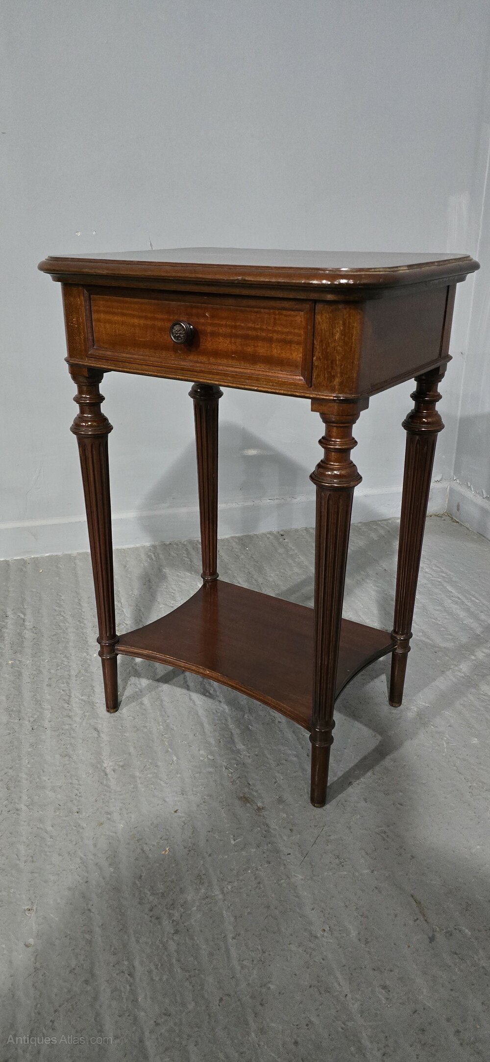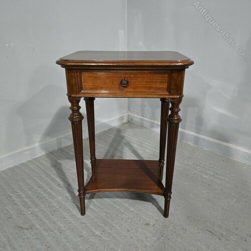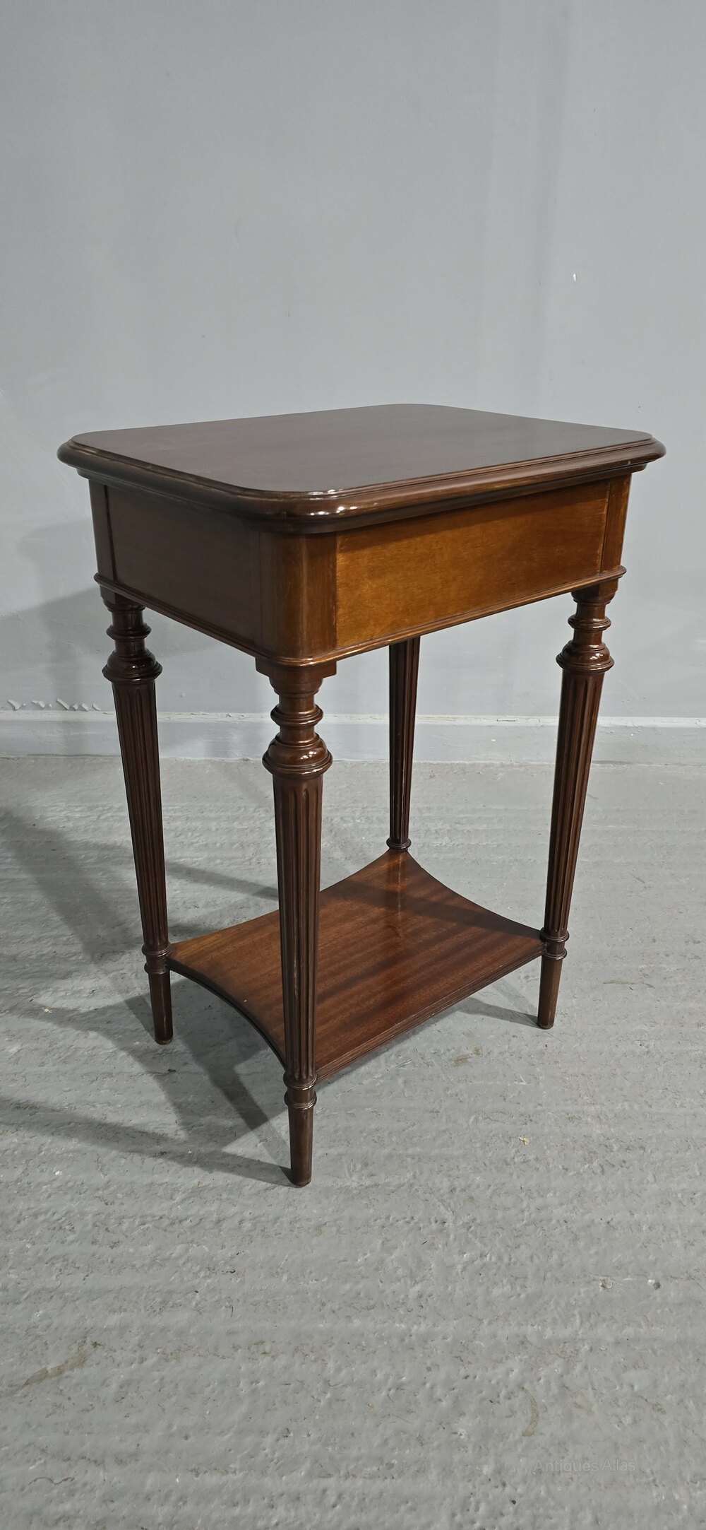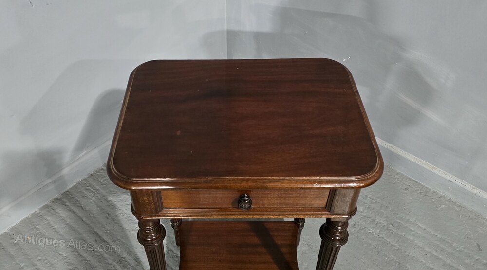 A Victorian mahogany lamp or occasional table, rounded rectangular top above a frieze drawer, turned and fluted legs, freestanding with a incurve undertier.