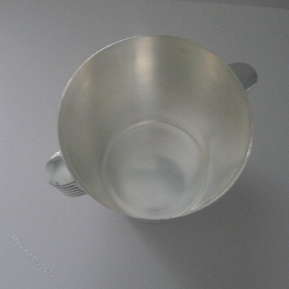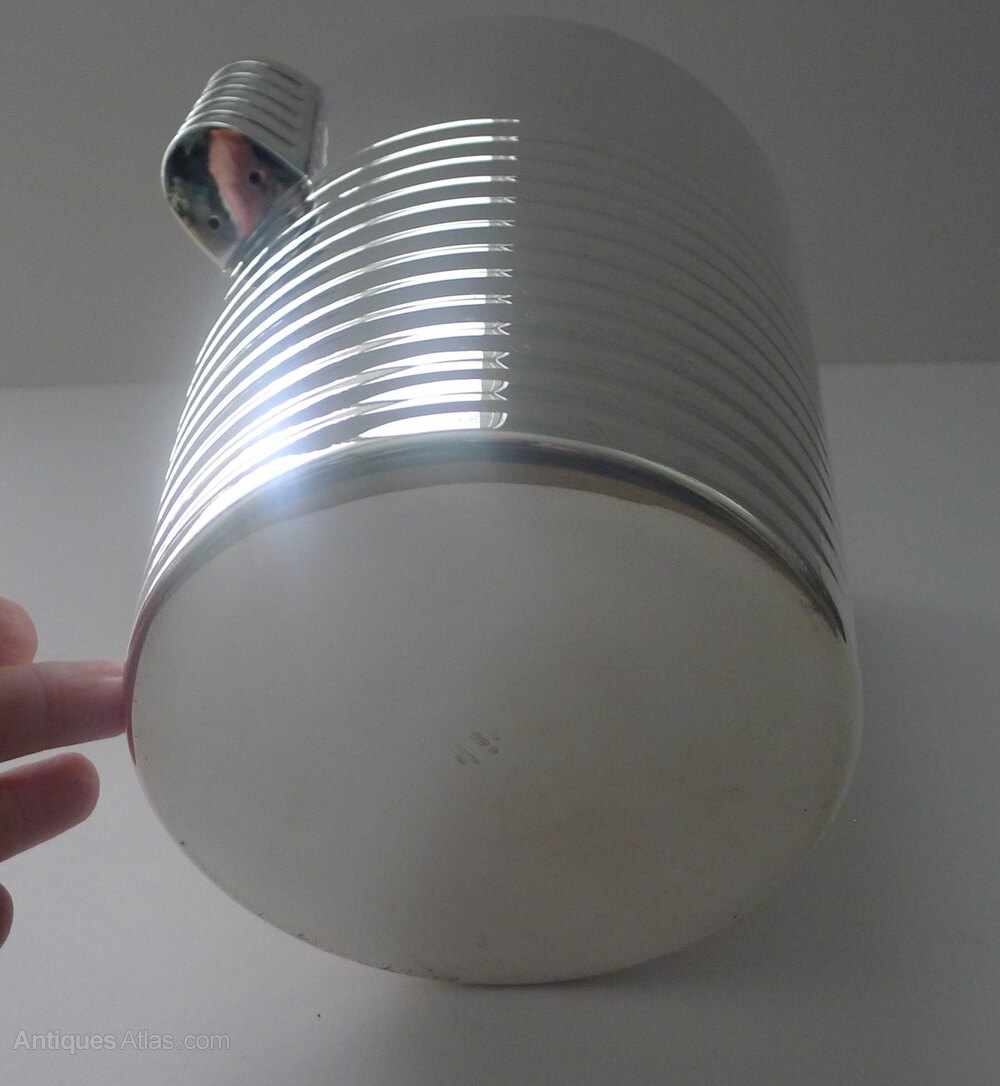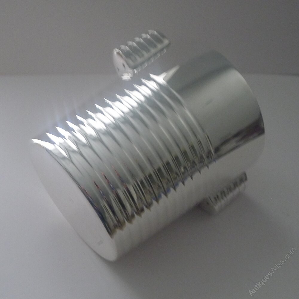 A fabulous Art Deco silver plated Champagne bucket designed by the celebrated Luc Lanel for Christofle designed in1932. A stylish ribbed vessel with with ribbed lug handles