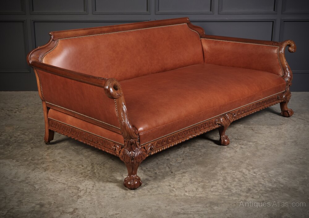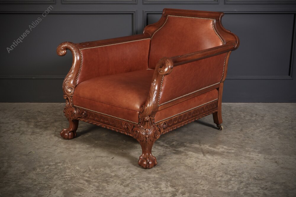Antique Victorian Carved Mahogany Chaise Longue