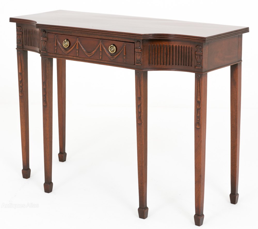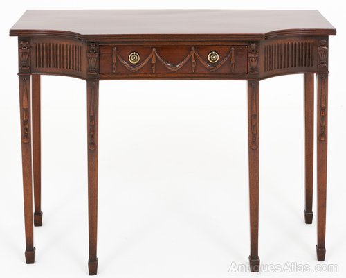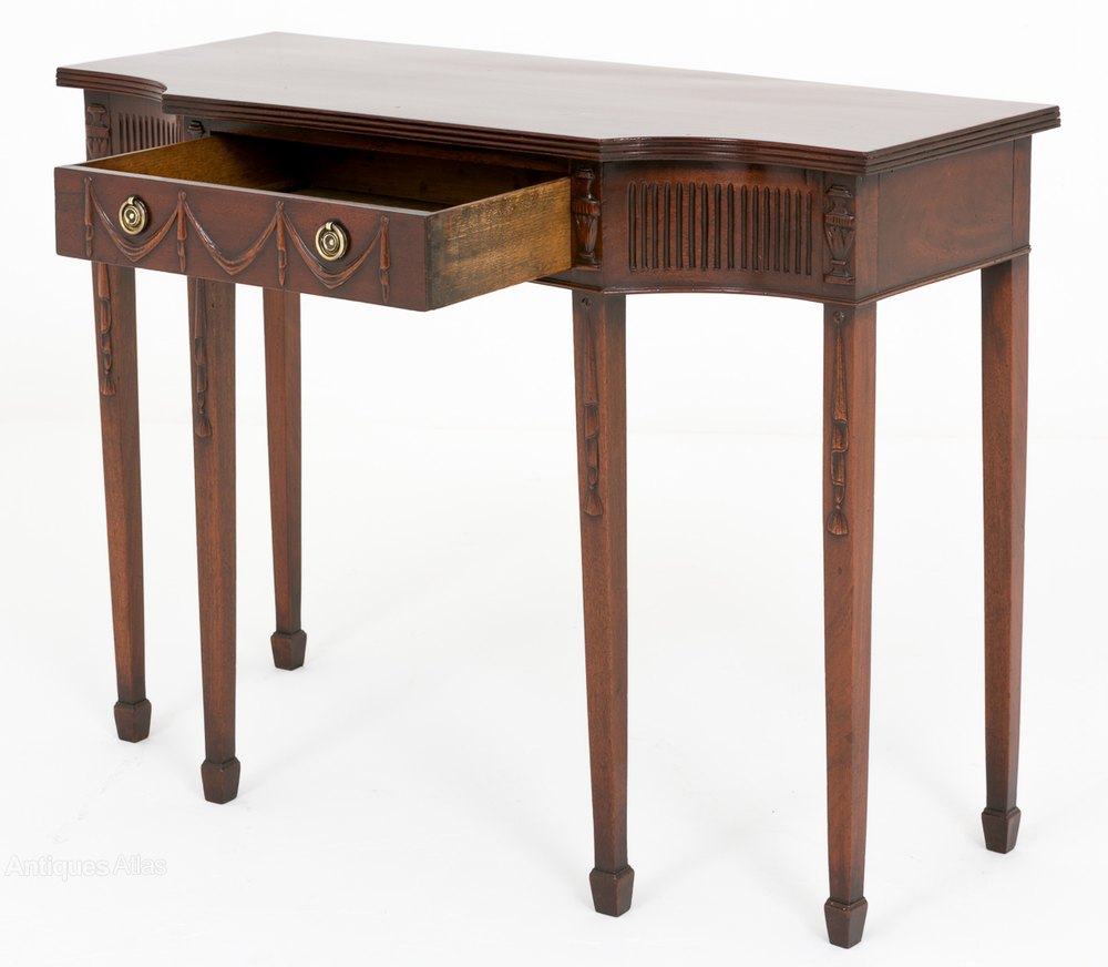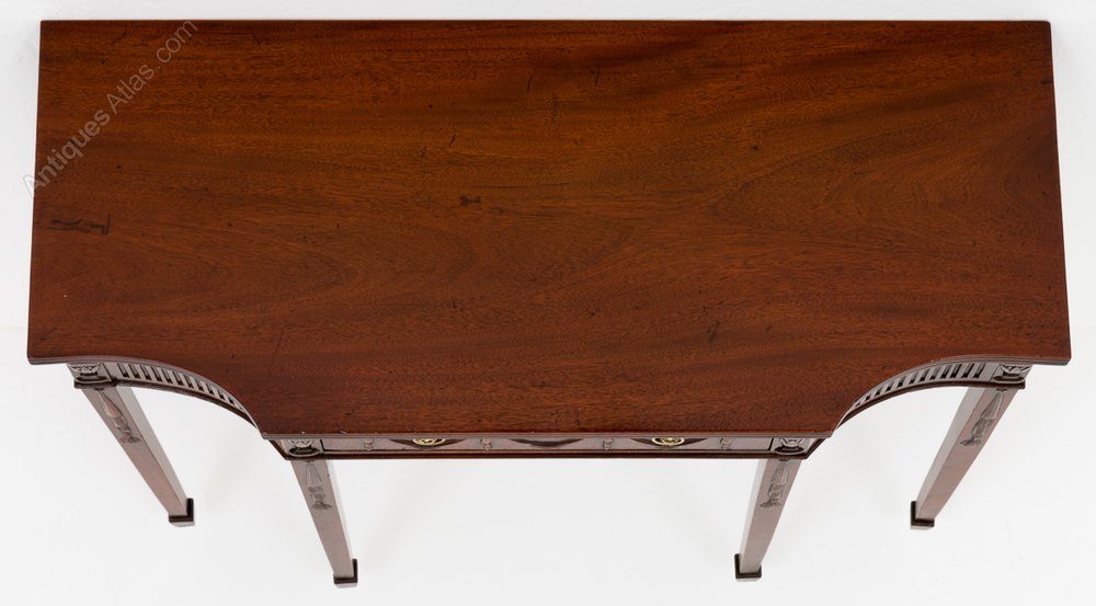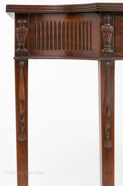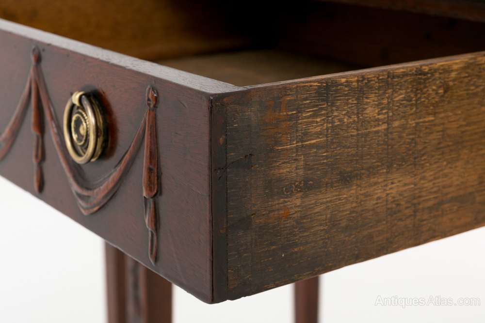 The Oak and Pine lined drawer having ring turned handles and typical Adams style carvings.
