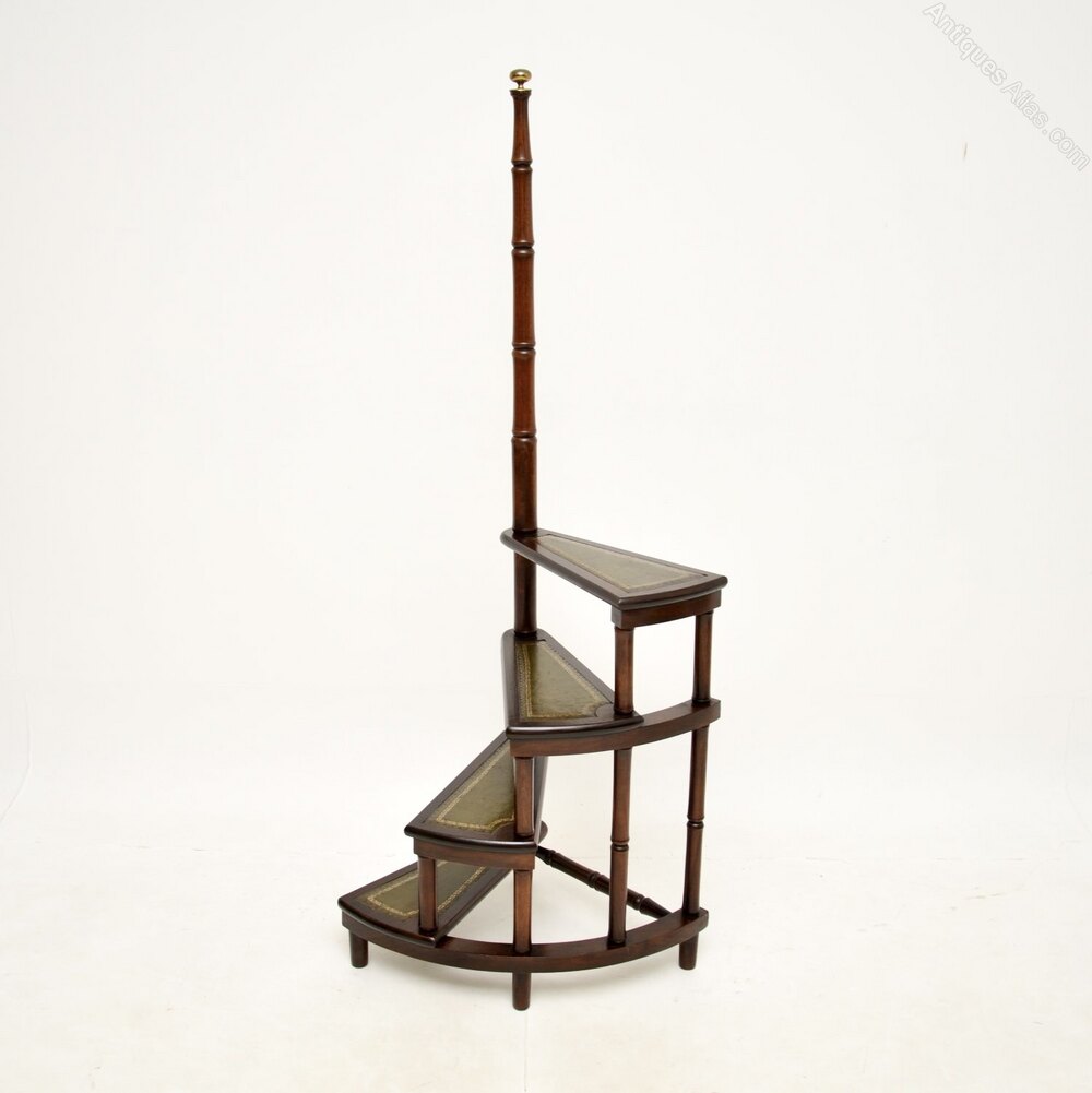 The quality is fantastic, they are very useful for reaching high shelves, and also make great side antique tables / decorative items. The mahogany frame is well constructed and the steps have inset tooled leather surfaces.
