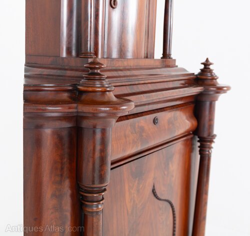 The upper section mirrors the classical design, having a single door flanked by turned columns and crowned with a shaped cornice, creating a balanced and architectural silhouette.