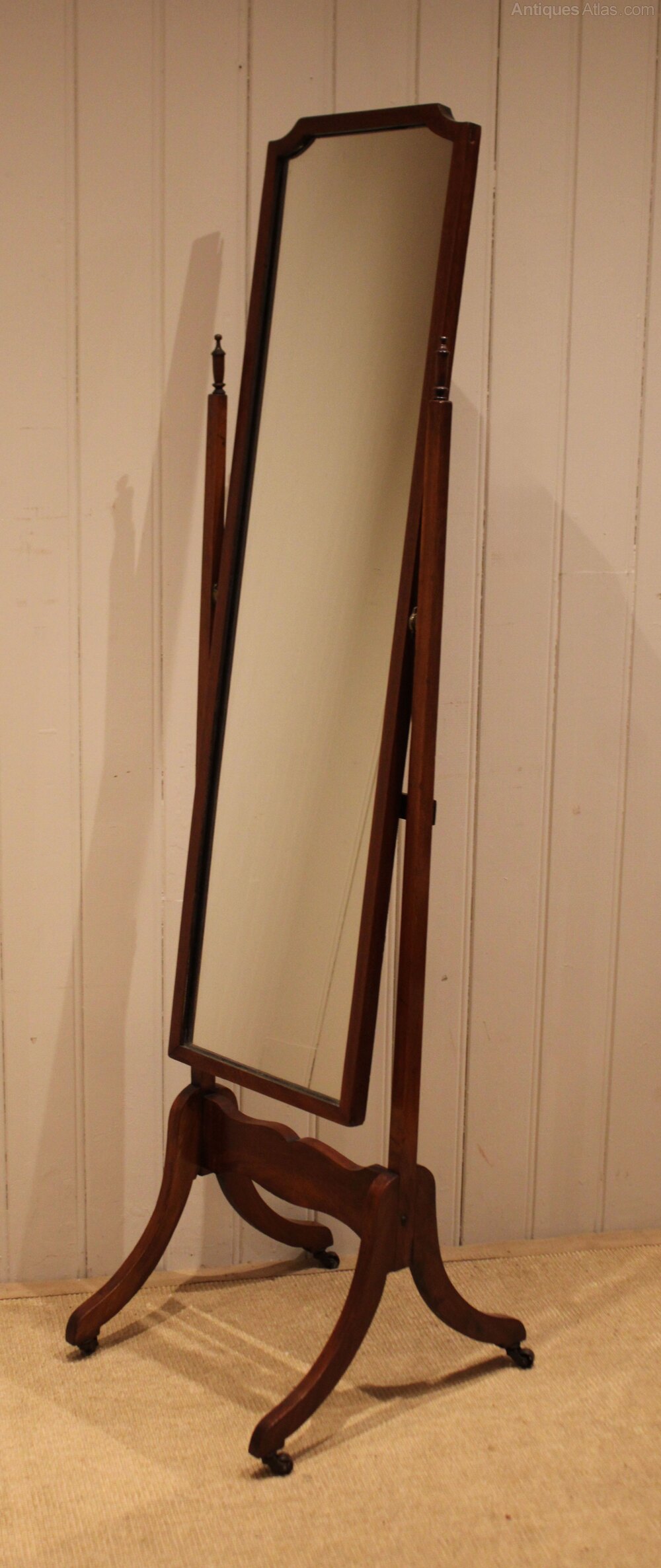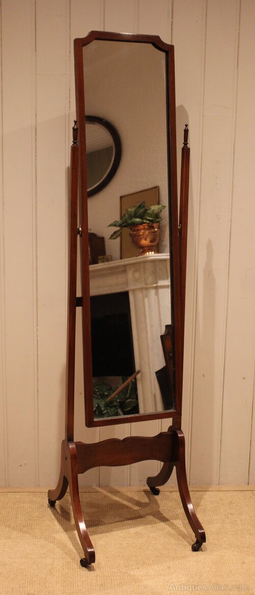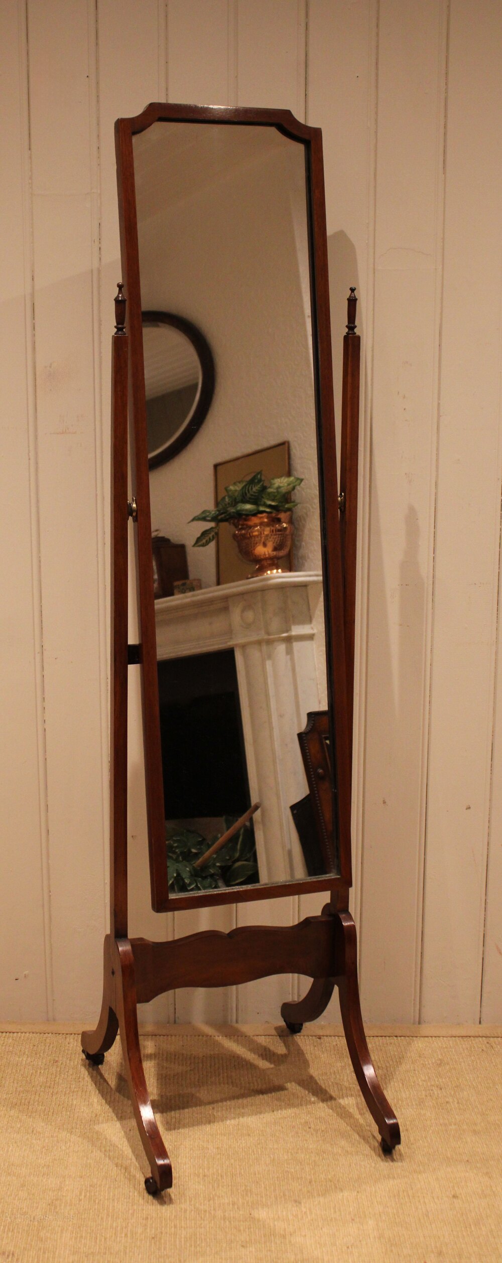 Antique Edwardian Inlaid Mahogany Cheval Mirror