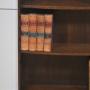 Raised on shaped bracket feet with a subtle bow-fronted profile, this piece combines refinement with practicality. Its slim proportions make it ideal for both large and smaller interiors, while the adjustable shelves allow flexible use.