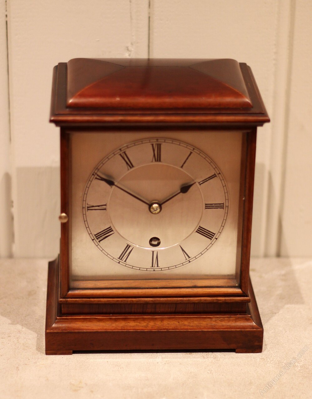 Antique Walnut Vaneered Clock Quartz Movement.
