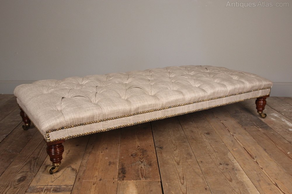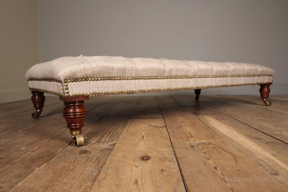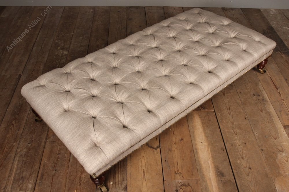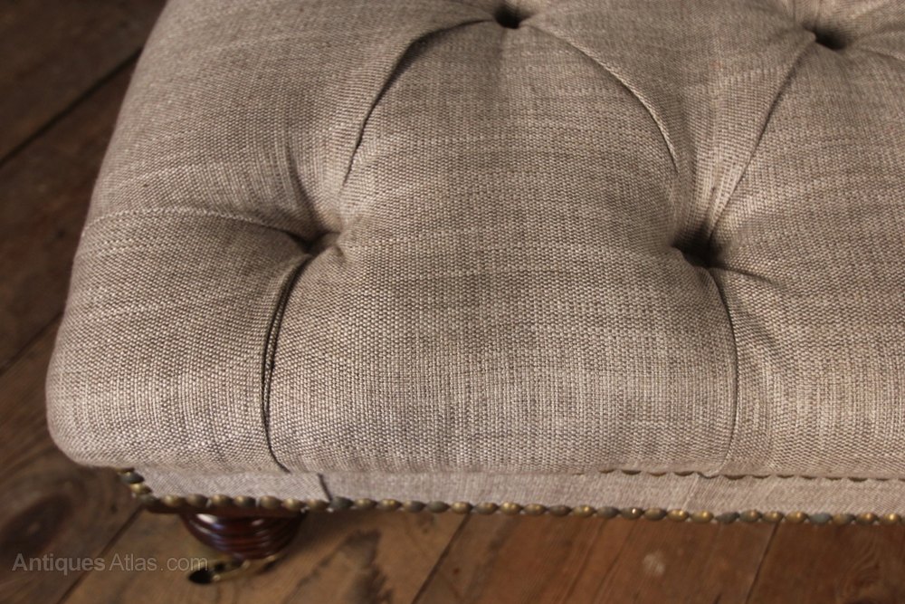 Large Mahogany & Buttoned Leather Footstool 19thC