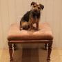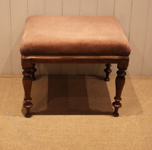 Mahogany upholstered stool raised on turned supports . A great item for a reupholstery project .