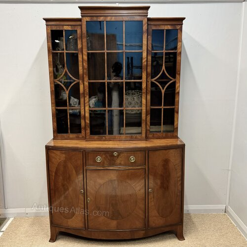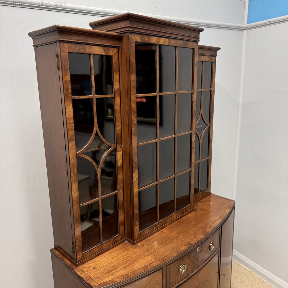 Super quality and lovely bow front to this Maple & Co glazed bookcase on bow front cabinet below, circa 1920 and in great condition.