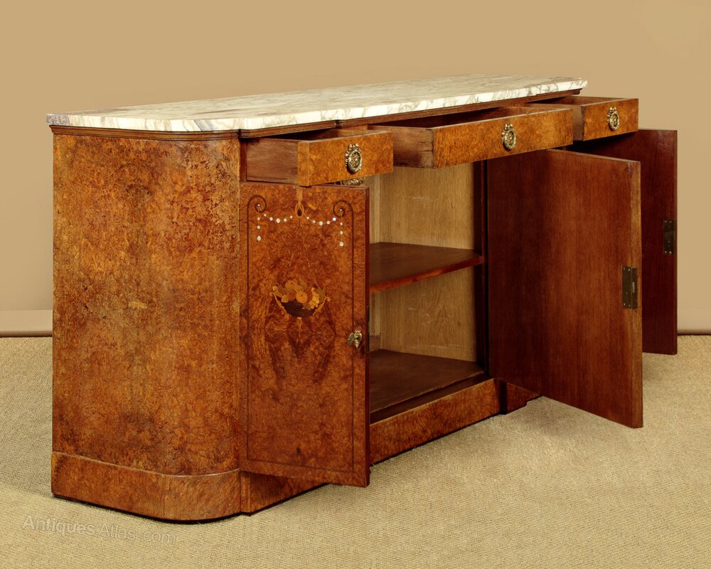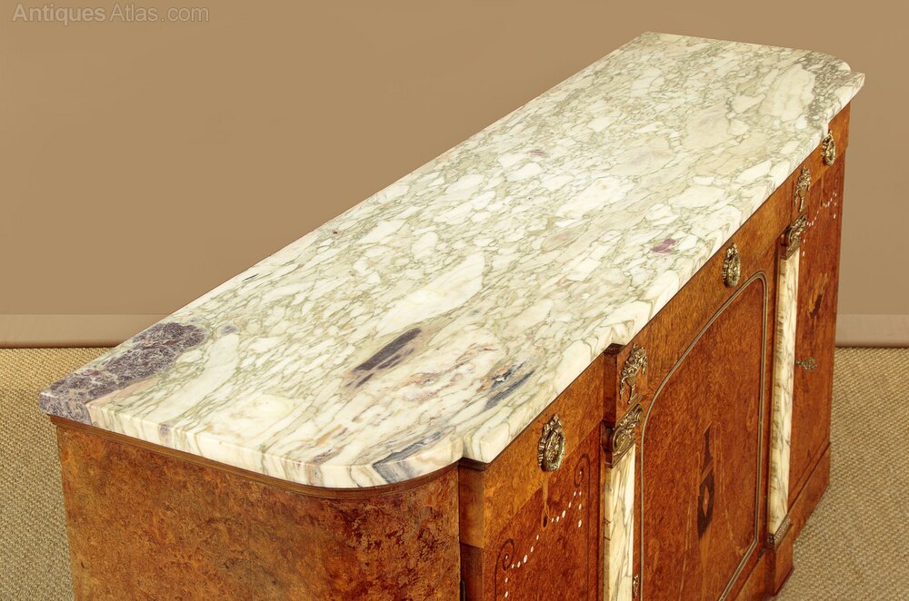 Marquetry Inlaid Marble Top Sideboard c.1920