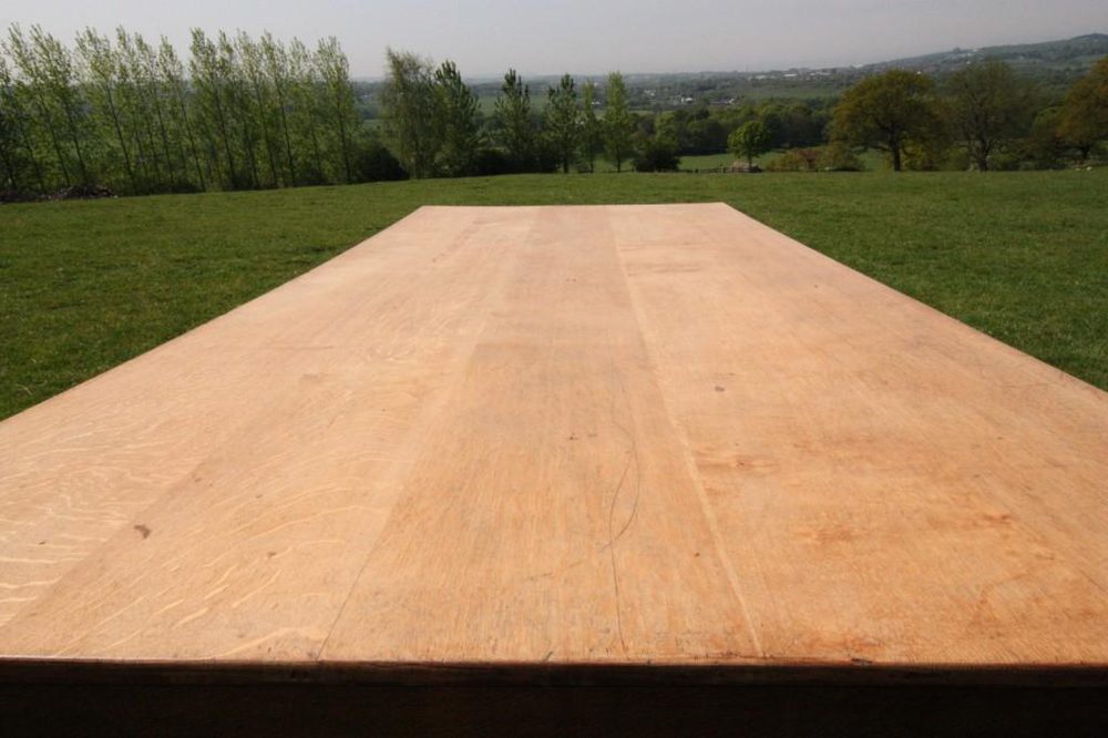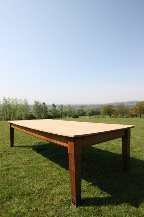 The huge rectagular dining surface has a scrubbed, natural finish.