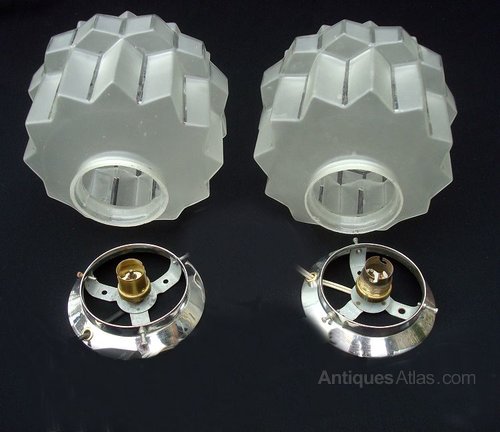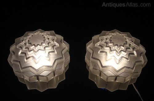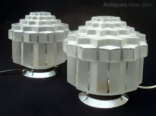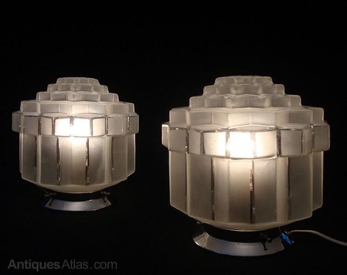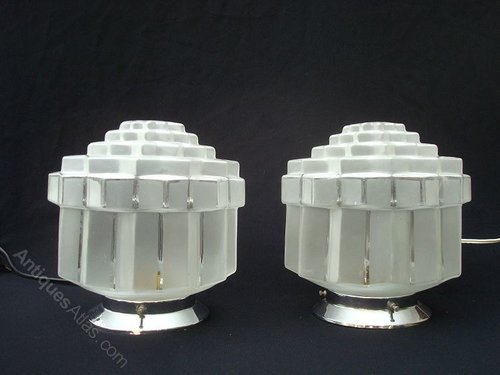 These ceiling lights are an absolute gem and a must have if you love Art Deco, they can't be mistaken for any other era can they? Totally authentic and oozing style are very beautiful and rare to source Art Deco matching pair of ceiling lights. Frosted glass makes up the wonderful skyscraper design, these look very glamorous when lit up. Both sit in a stepped chrome gallery. Ideal size for most rooms and particularly good if you have low ceilings. Both have an English bayonet fitting and will take 25 - 60 watt bulbs.