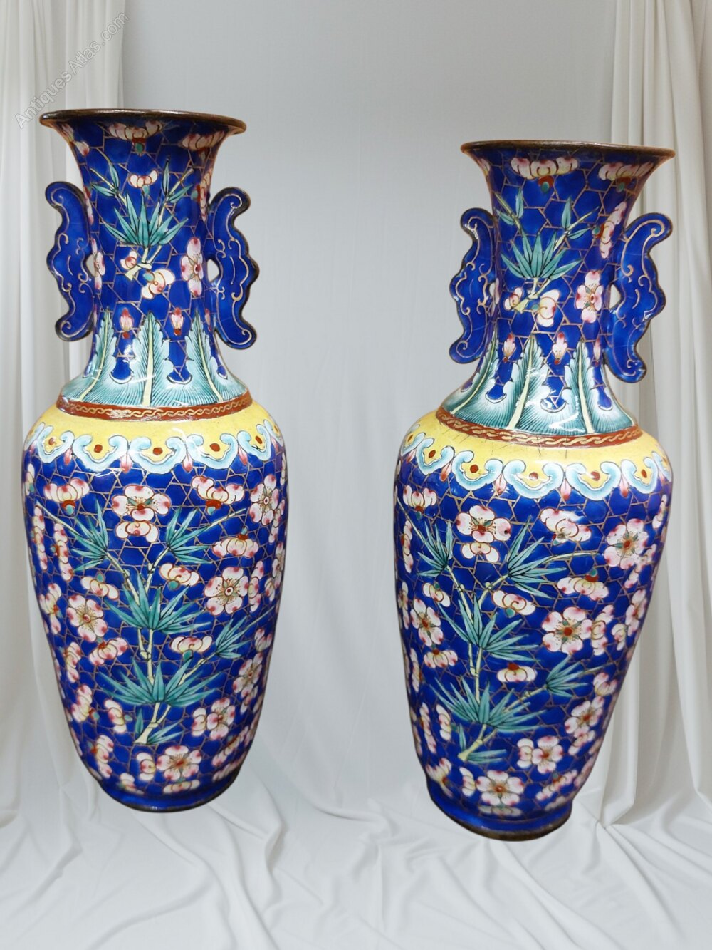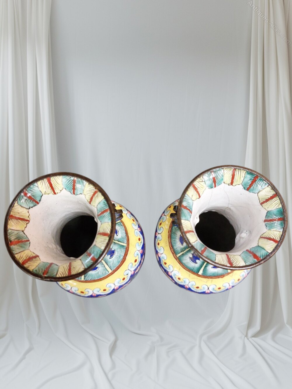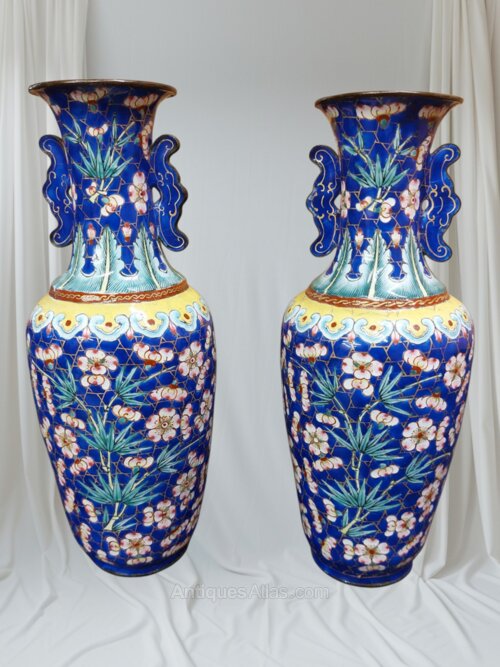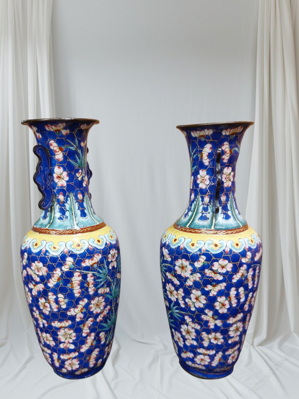 A lovely Concentric pair of Chinese enamelled on copper vases dating from the 19th century Qing dynasty. Circa 1880. Beautifully decorated. No missing enamel and in very good condition. 7 1/4" tall x 3" wide at the widest point.