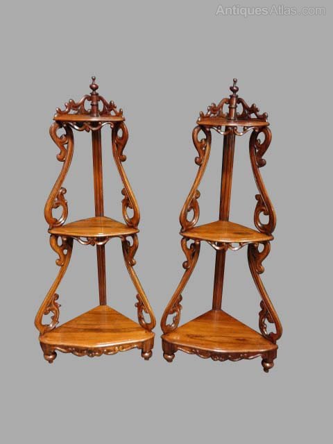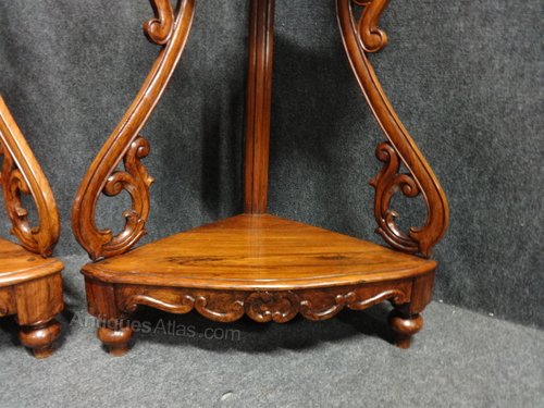A good pair Rosewood corner display whatnot stands in very good original condition.