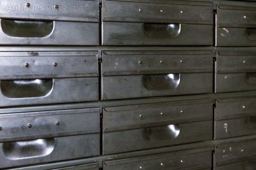 This large bank of drawers is a recent arrival to our range of industrial storage antique furniture.